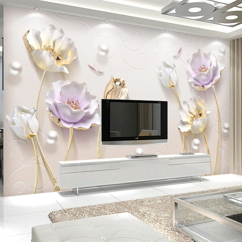 Прямая поставка пользовательские фото обои Простые Ювелирные изделия трехмерные тюльпаны обои офис диван ТВ фон 3D обои
