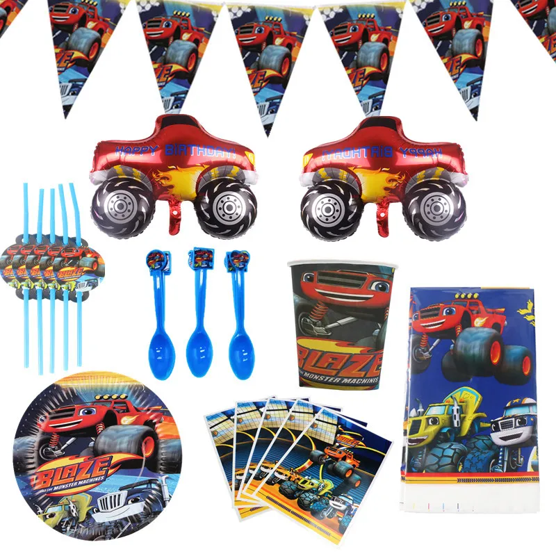 Машина Blaze and the Monster, товары для вечерние, одноразовая посуда, бумажная тарелка, соломенная чашка, воздушный шар для вечеринки в честь Дня Рождения Ребенка