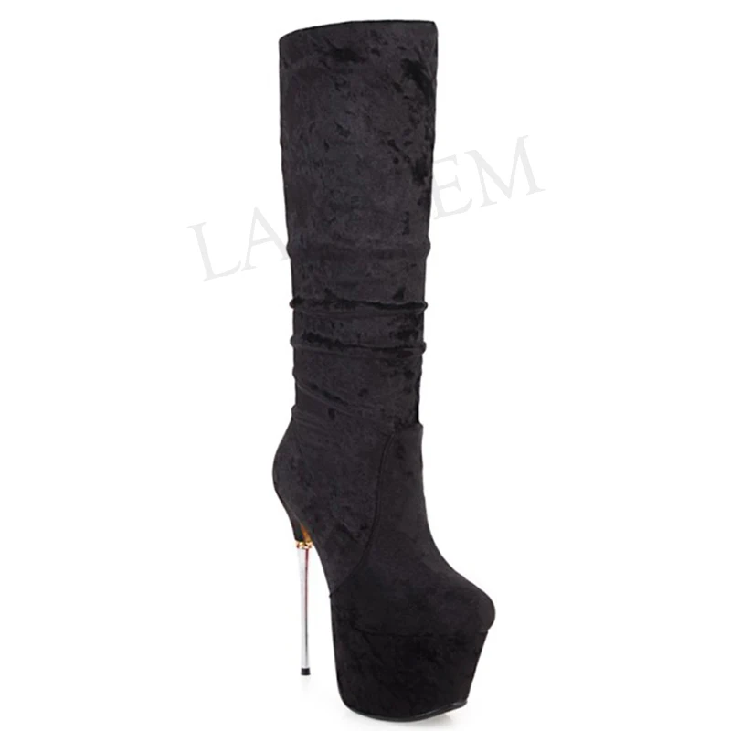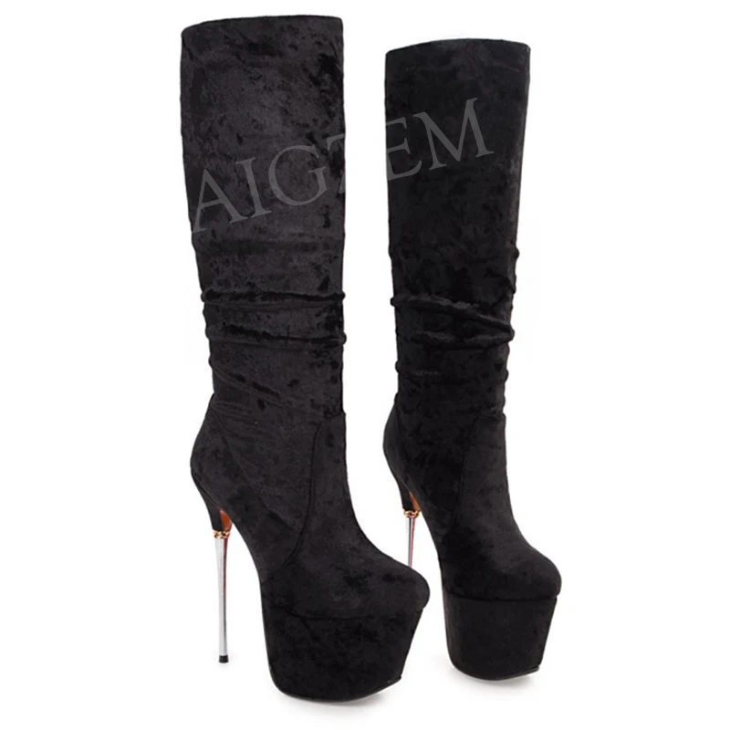 BERZIMER/Женская Высота платформы по колено, сапоги 16 см на металлической шпильке, мягкая обувь из искусственной замши, женская обувь, Zapatos Mujer, большой размер 33, 38, 39, 43