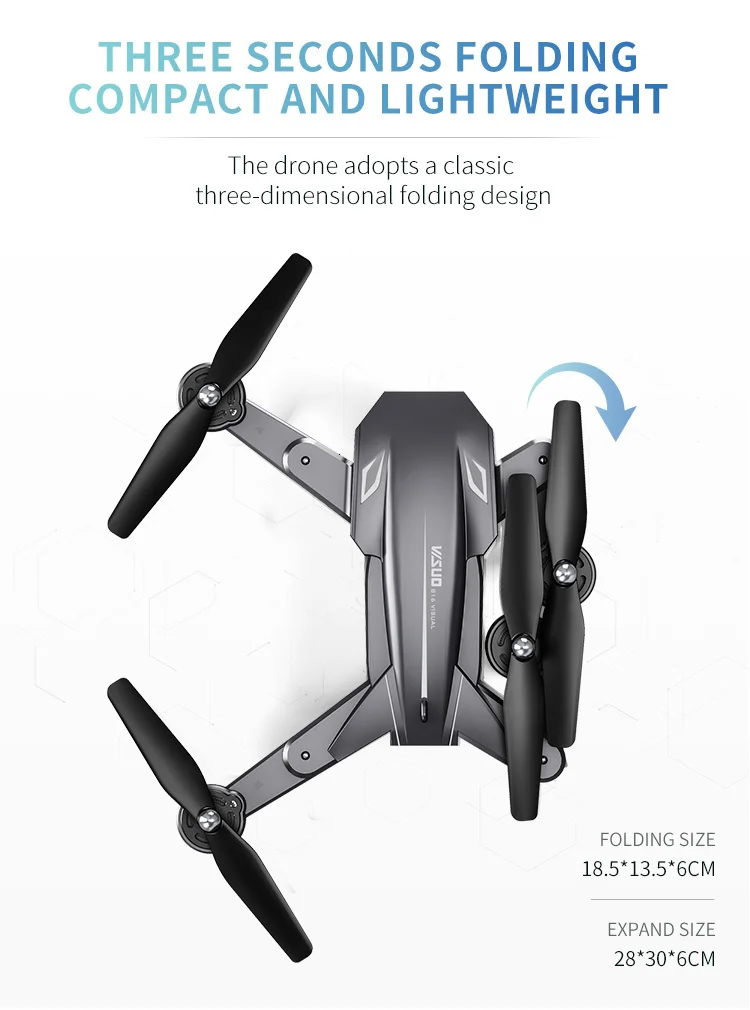 2. HD FPV Flight: оснащен 4K/720P HD, который передает видео в режиме реального времени, sВерхний переключатель обзора: Обычный передний объектив, нижний объектив, изображение на картинке, сплит-экран, угол наклона камеры регулируется