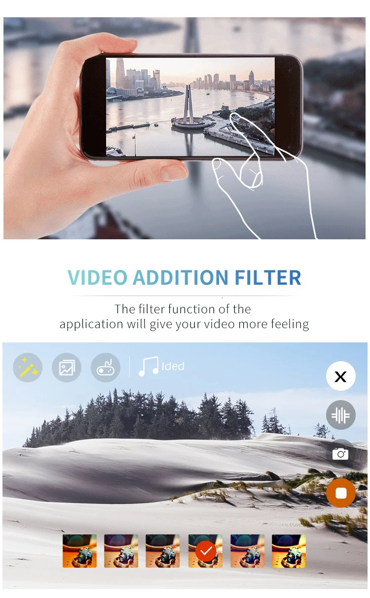 4. Один ключ следующий режим, яВ режиме, Дрон будет летать по плееру, чтобы запечатлеть прекрасный момент