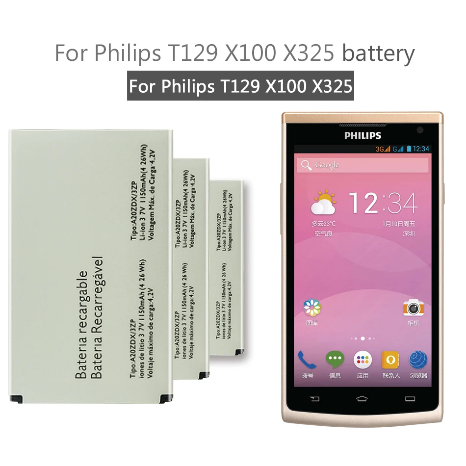 Аккумулятор A20ZDX3ZP для PHILIPS Xenium X325 X100 T129, батареи дл...