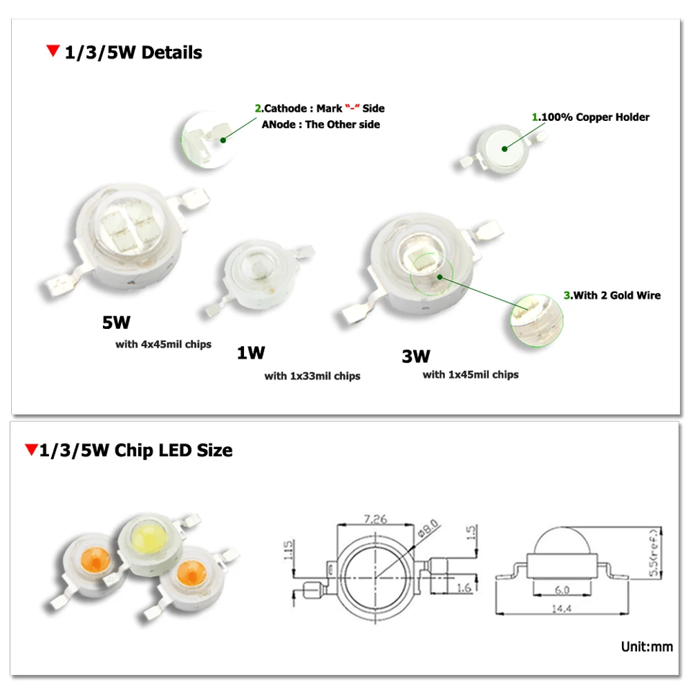 Chip Size:33x33mil,45x45mil (Epistar, Epileds, BridgeLux,San'an etc.