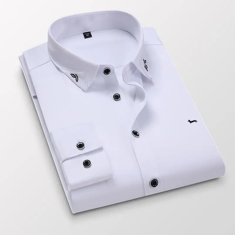 Рубашка мужская приталенная с длинным рукавом, деловая брендовая сорочка с вышивкой, Повседневная блуза, весна-осень
