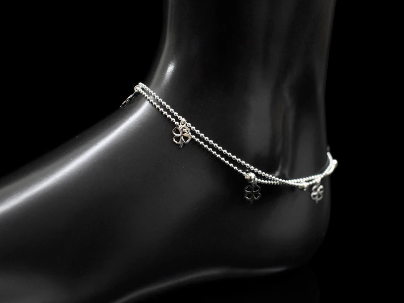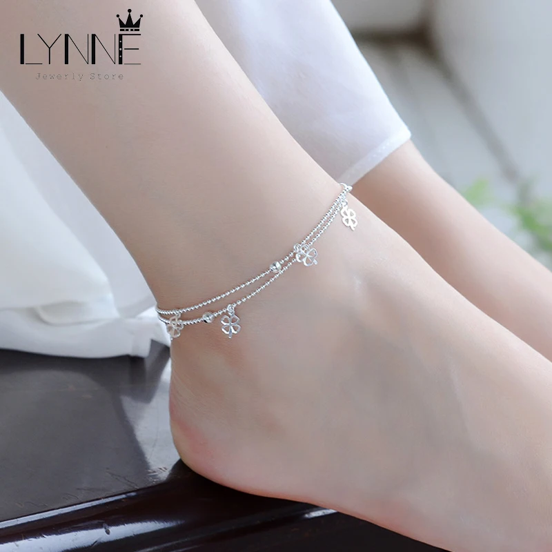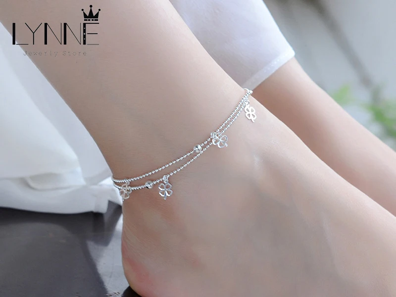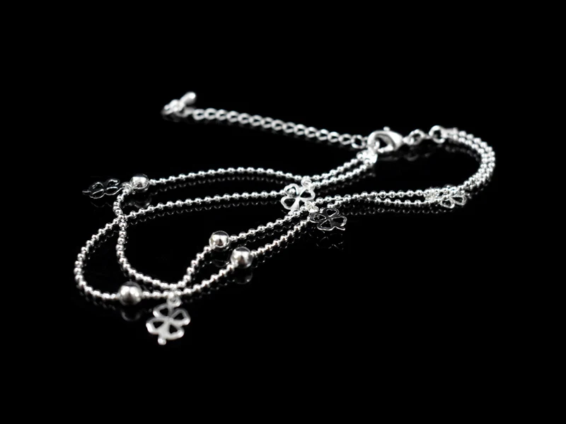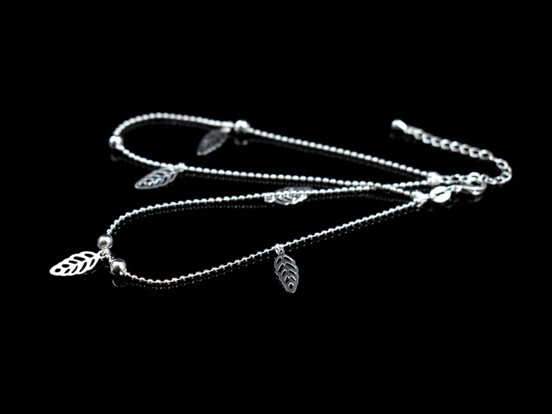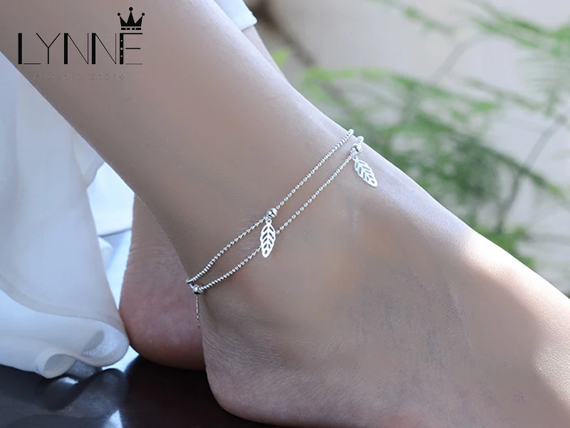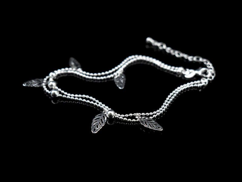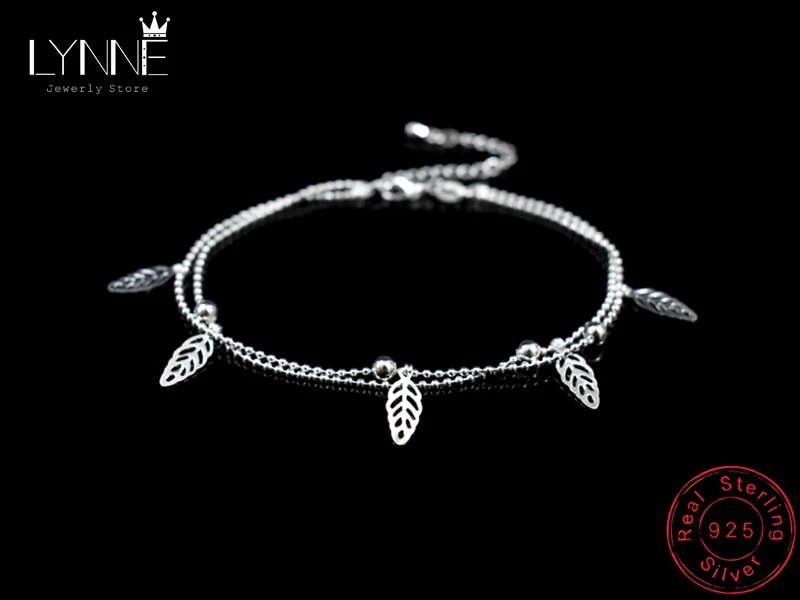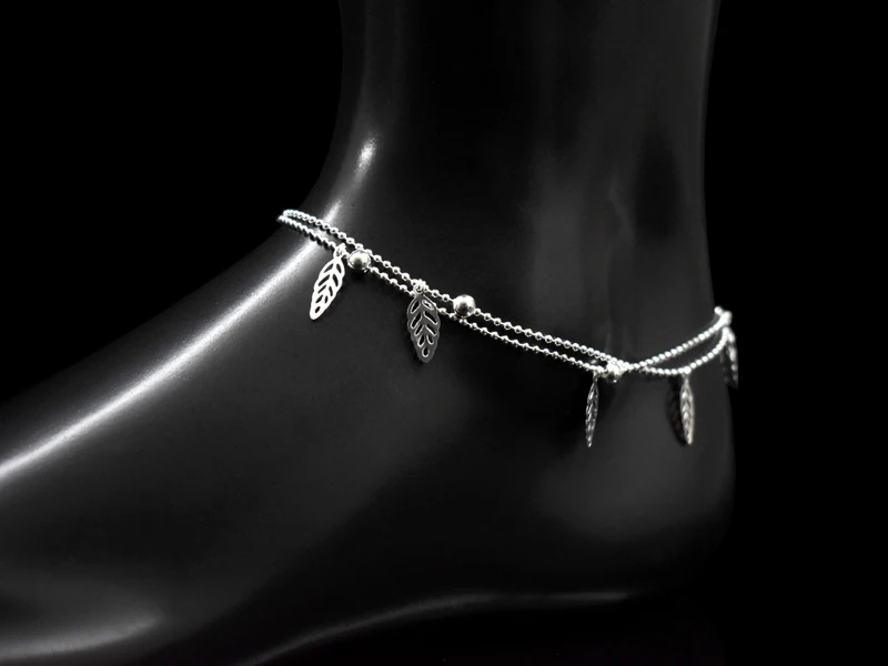 Женский ножной браслет из стерлингового серебра 925 пробы с подвеской-листьями и маленькими бусинами, Подарочная бижутерия