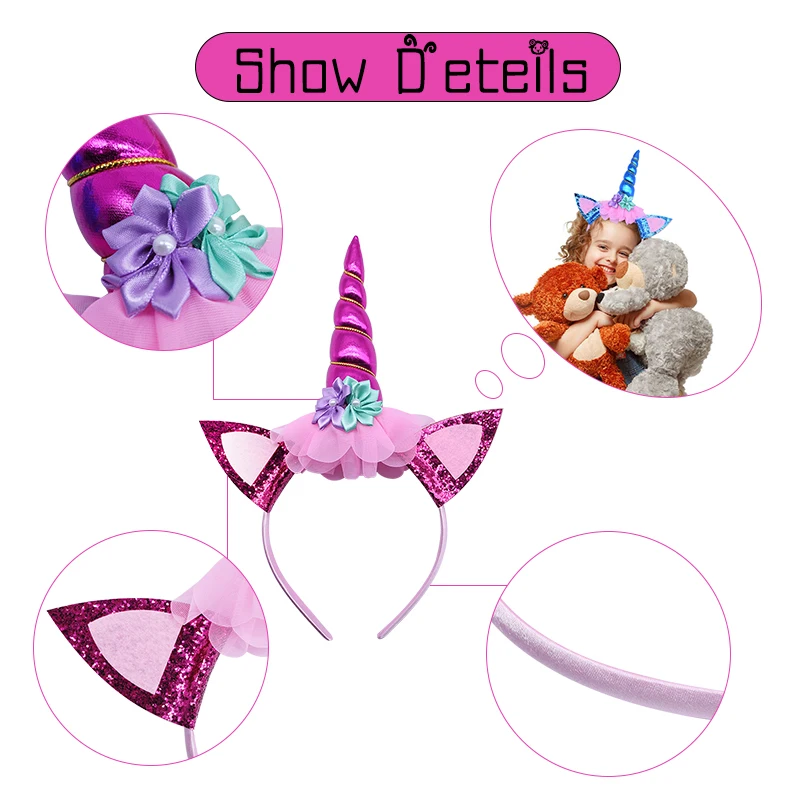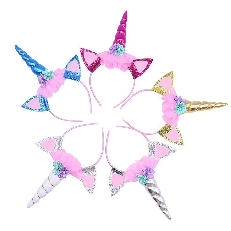 1 шт. милые повязки на голову с рогом единорога, ушки кошки, головной убор для девочек, подарок на день рождения, реквизит для фото вечеринок, обруч для волос, Детские аксессуары для волос