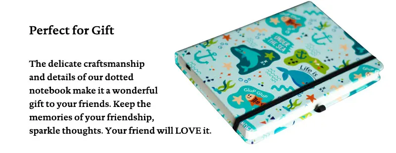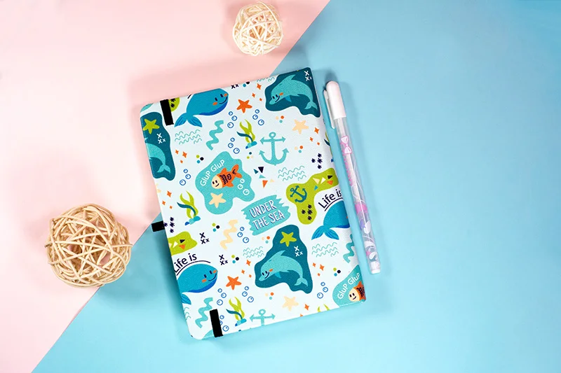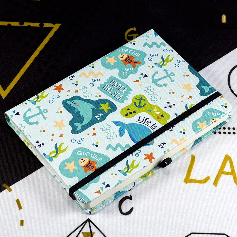 Mar Animais Doodle Bullet пунктирной журнал 160GSM Толстая бумага B6 Travel Упругостия полоса Дневник Планировщик HardCover Ноутбук