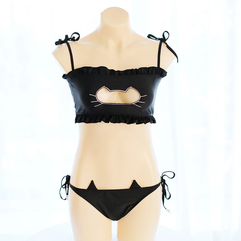 Женская обувь для костюмированной вечеринки Кот бюстгальтер с замочной скважиной с трусы; Нижнее белье; Комплект нижнего белья, в комплекте идет украшение на шею женские туфли, плоская подошва, сексуальный комплект нижнего белья