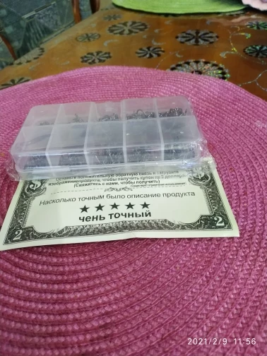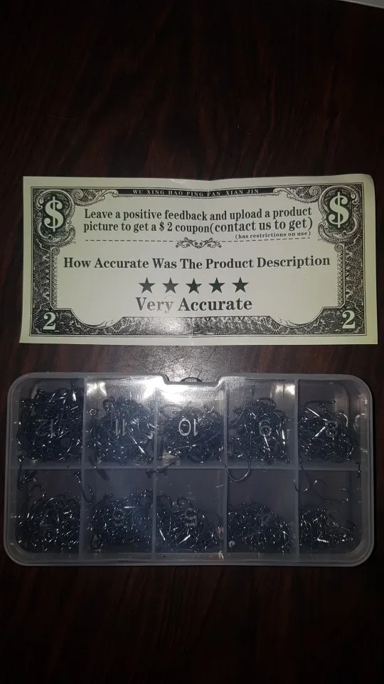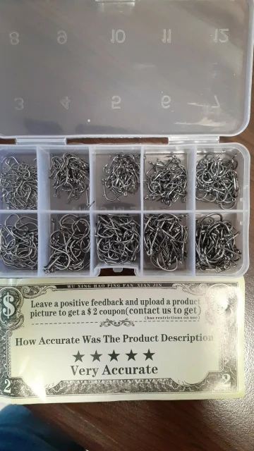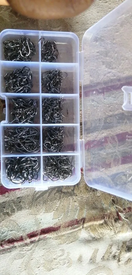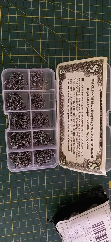 Заказ пришел за месяц.Трек отслеживался.Количество не считал.Что могу сказать по качеству,в принципе крючки острые,металл не тонкий,пружинит.Удобная коробочка,теперь не нужно будет тягать много коробочек для крючков,все крючки будут лежать в одной коробке.Еще огромное спасибо продавец положил купон,мелочь,но все равно приятно.Спасибо большое продавцу,успехов вашему бизнесу.