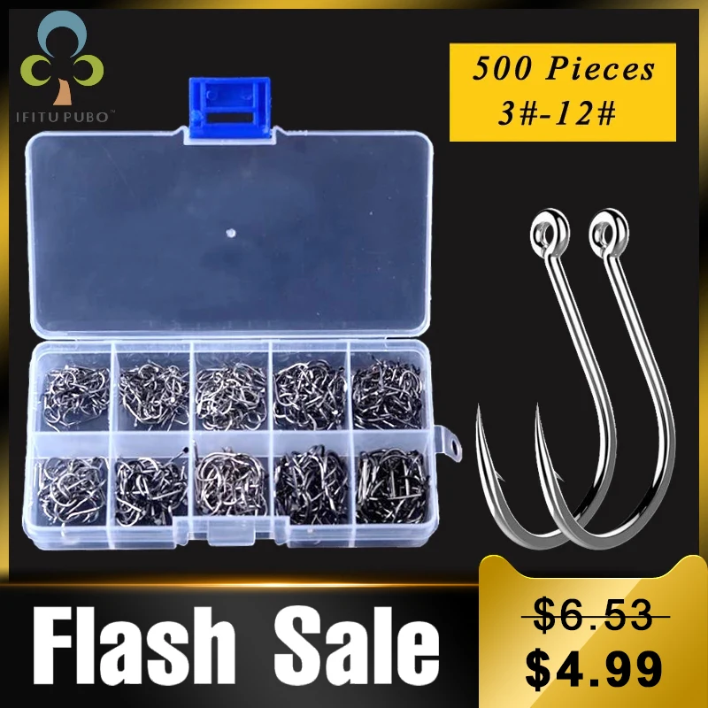 Рыболовные крючки из высокоуглеродистой стали, 500 шт.кор., рыболовные крючки разных размеров с зазубринами, для ловли карпа, рыболовные снасти