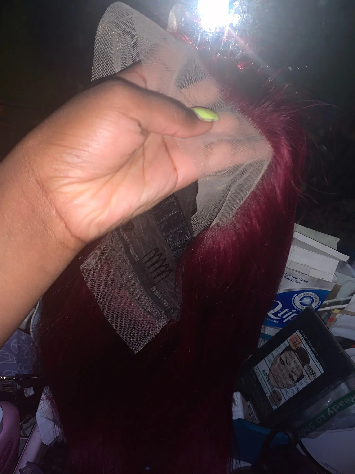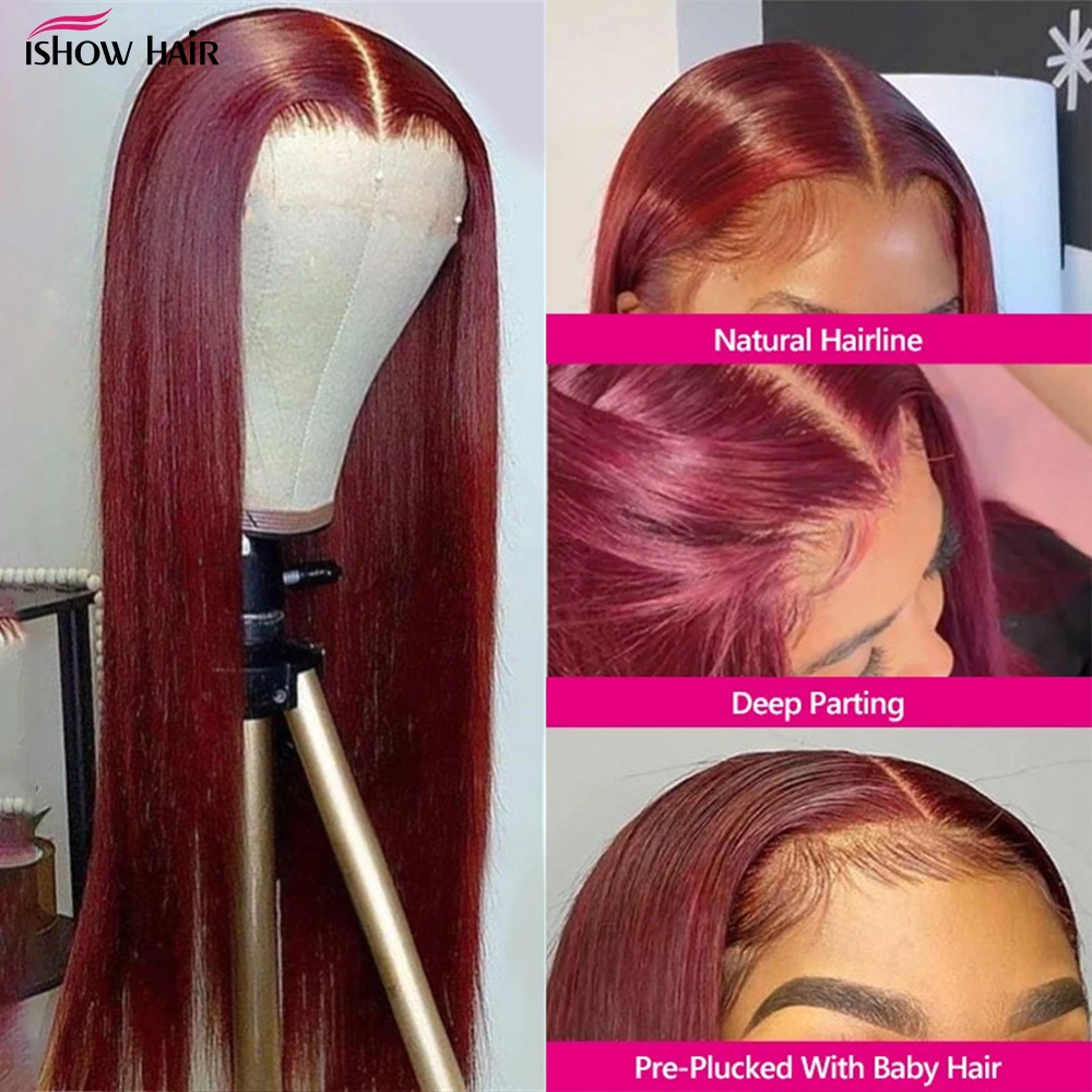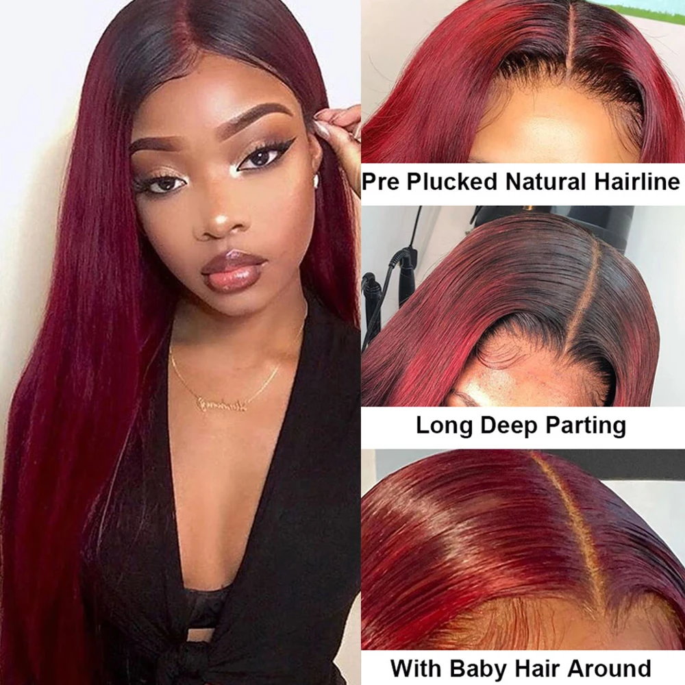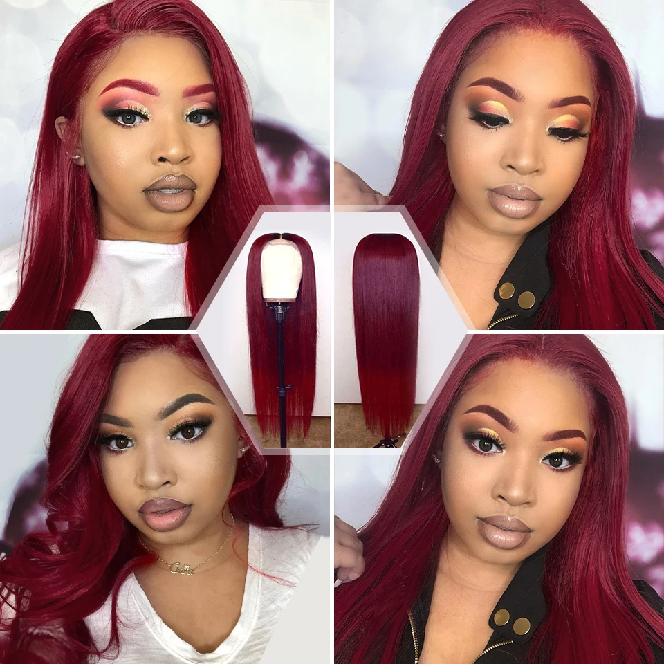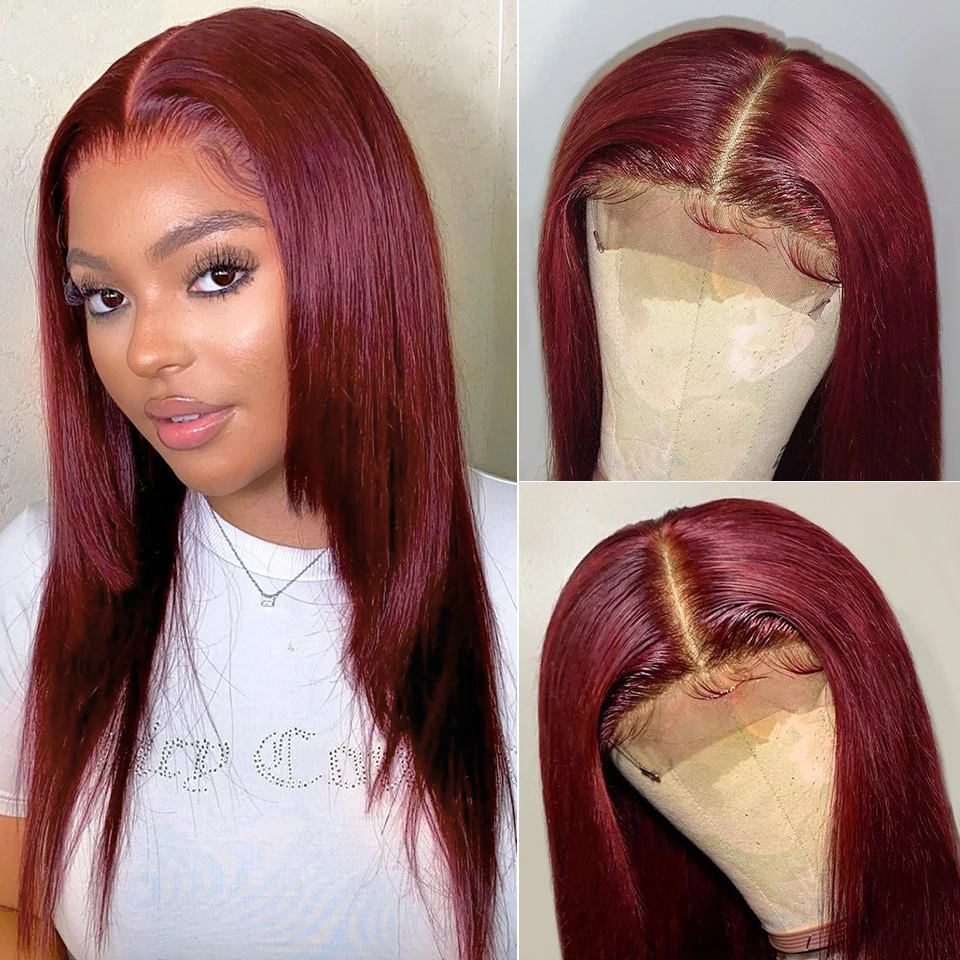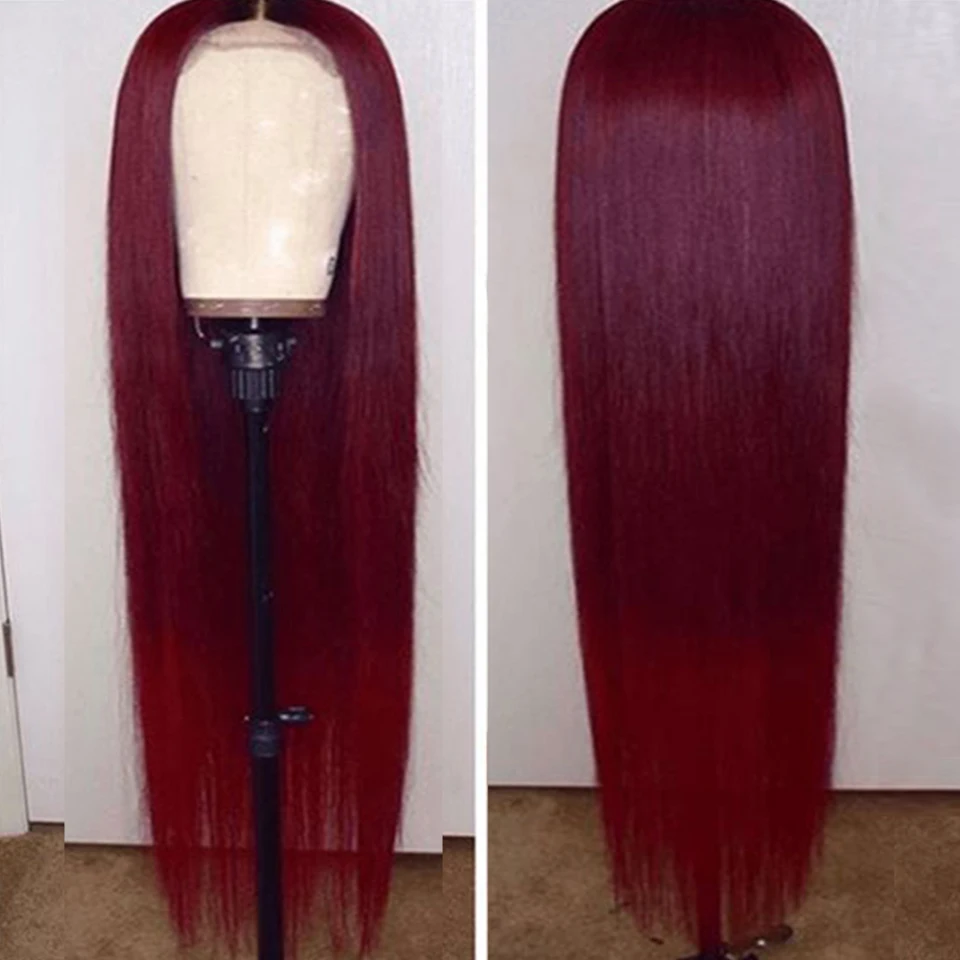 Парик из натуральных волос бордового цвета, 99J 13x4