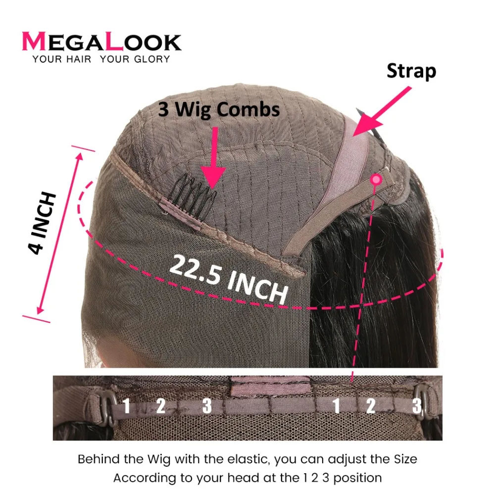 Парики с застежкой 4x4 на сетке Megalook Remy 30 дюймов, бразильски...