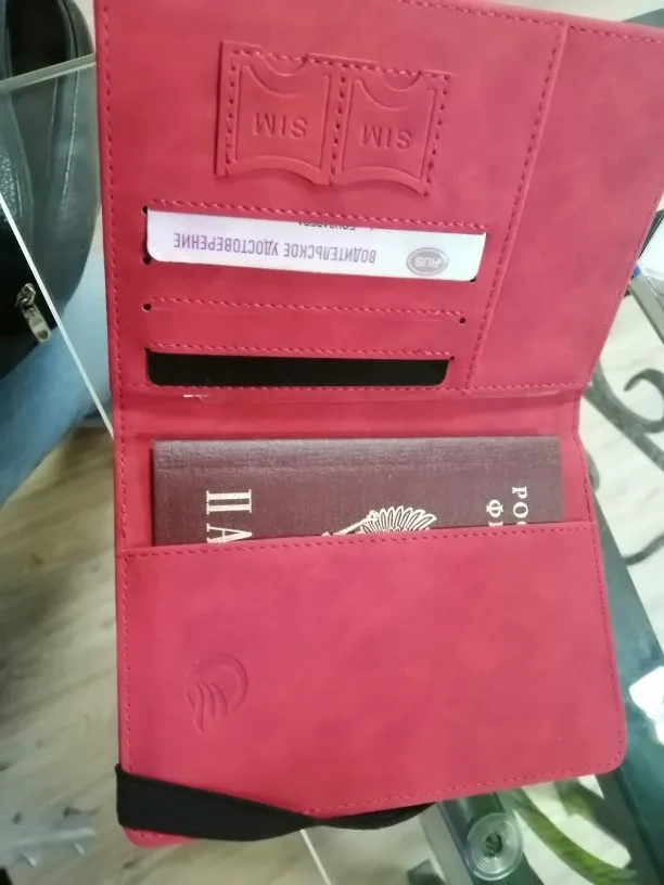 Товар, как описано. Выглядит красиво и хорошего качества. Хорошо подходит для моего паспорта. А также некоторые карты. Слишком маленький для страховых бумаг.