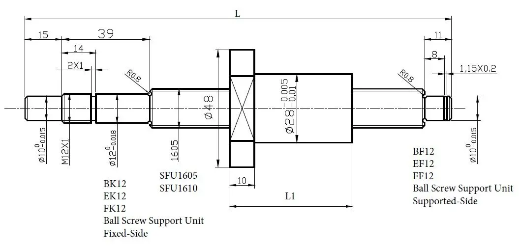 1 х Торцевая машина SFU1605 с шариковой гайкой;