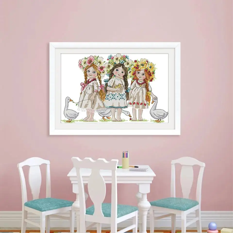 Набор для вышивки крестиком три девочки в гирлянде