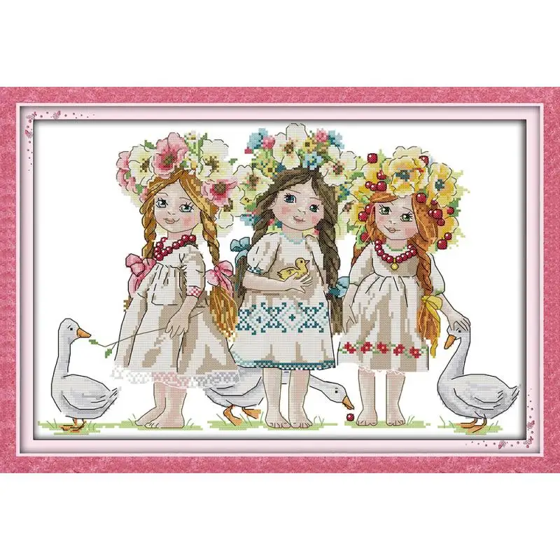 Три девушки носить гирлянда граф холст печатных вышивки крестом Набор для вышивки крестом DMC 14ct 11ct набор вышивки крестом сделай сам