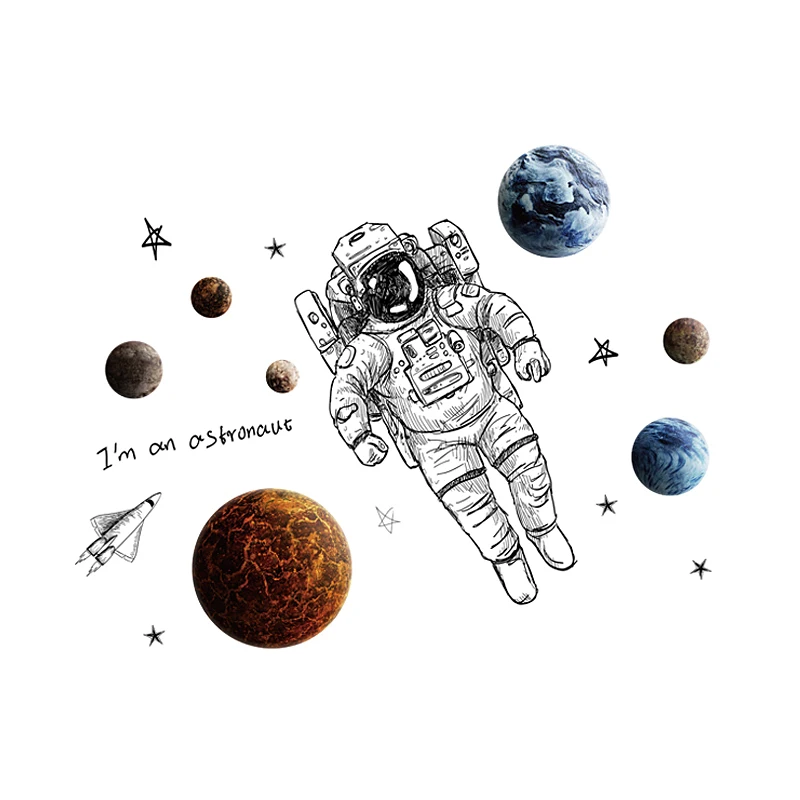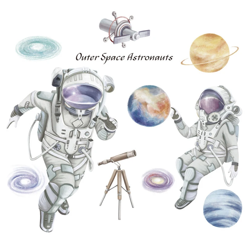 Мультяшная большая настенная наклейка, Вселенная, космос, астронавт, наклейки для детской комнаты, украшение, художественная роспись, декор комнаты, украшение, 60*90 см