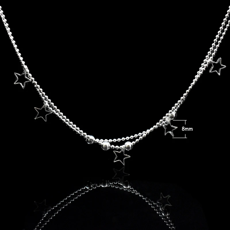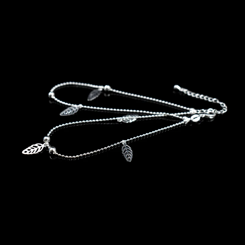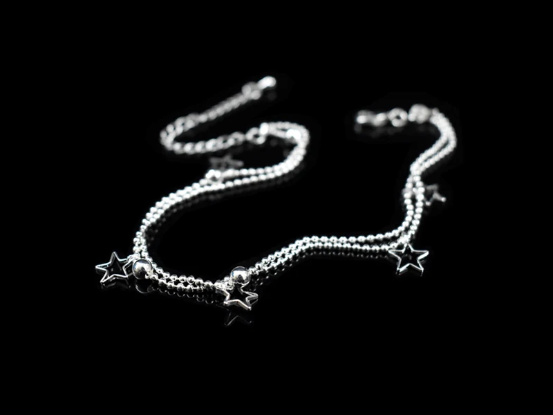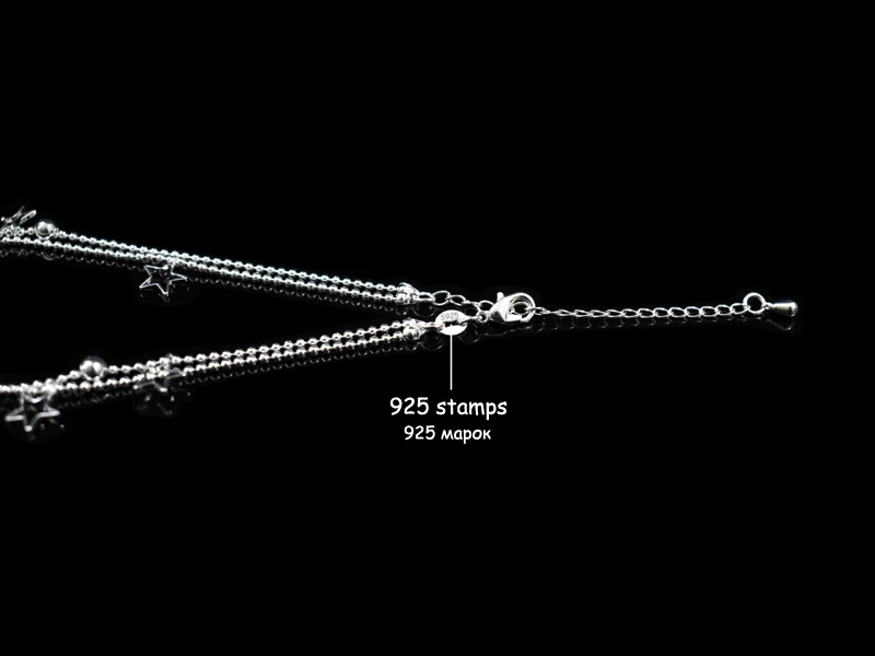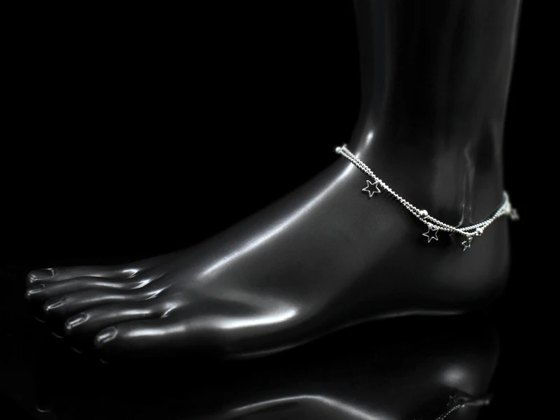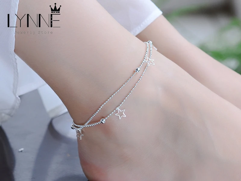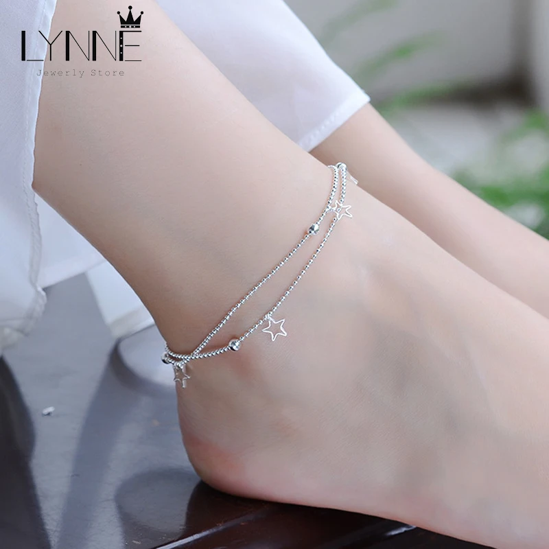 Женский ножной браслет, цепочка из стерлингового серебра 925 пробы с подвесками в виде звездочек, двухслойная цепочка с листьями, пляжный ножной браслет