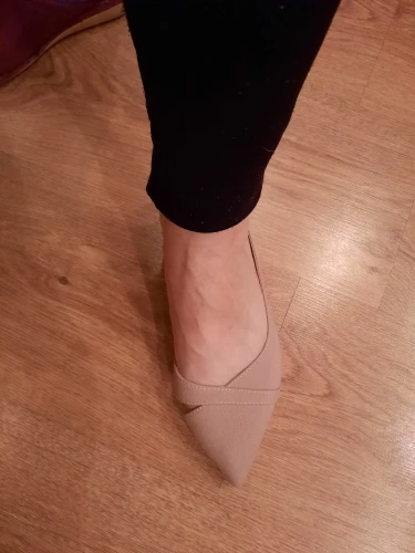 Красивые балетки, очень гармонично смотрятся на ноге. Материал необычный сверху. Цвет почти сливается с кожей, но в розовинку. Однако туфли на УЗКУЮ стопу. Мне пришлось их отдать, поскольку очень жало сверху и по бокам, хотя по длине хорошо. Моя длина стопы 24,5 см.