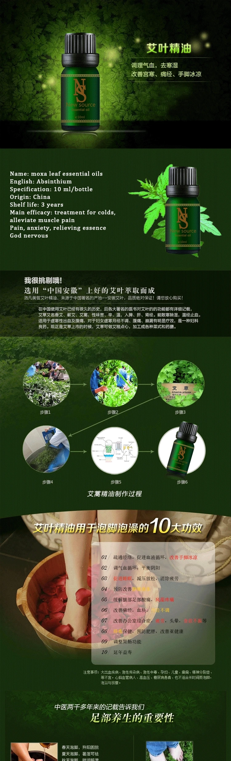 Эфирное Масло полыни Artemisia argyi, 10 мл, натуральные растительные эфирные масла, Эфирное Массажное Масло полыни с подогревом