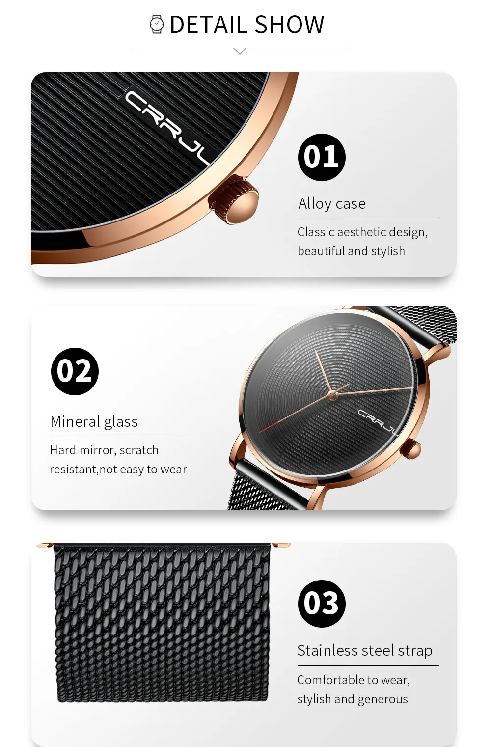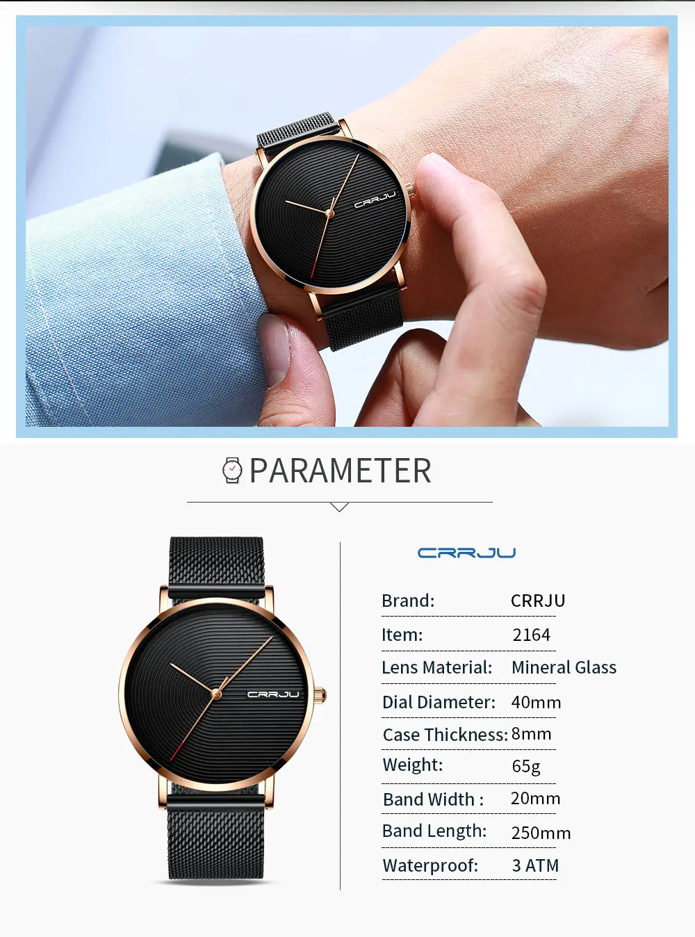 Часы CRRJU мужские наручные кварцевые, классические водонепроницаем...