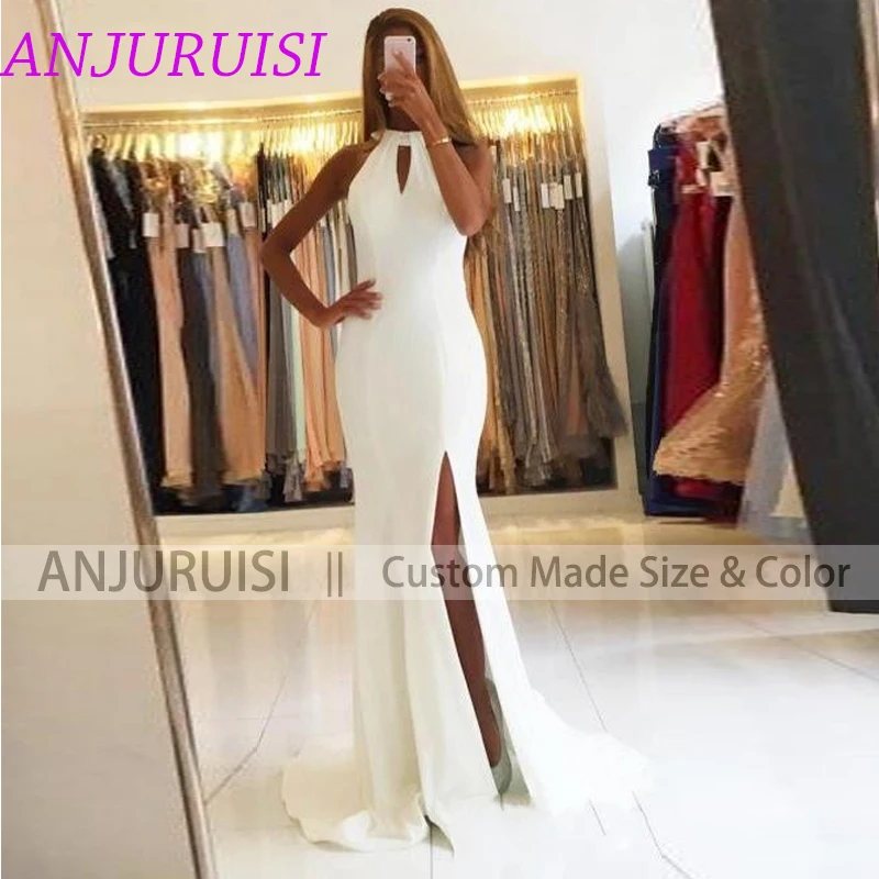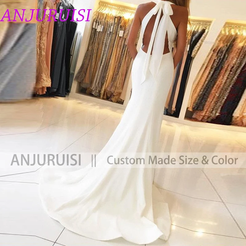 Женское атласное свадебное платье ANJURUISI, цвета слоновой кости, с открытой спиной и разрезом по бокам, 2020