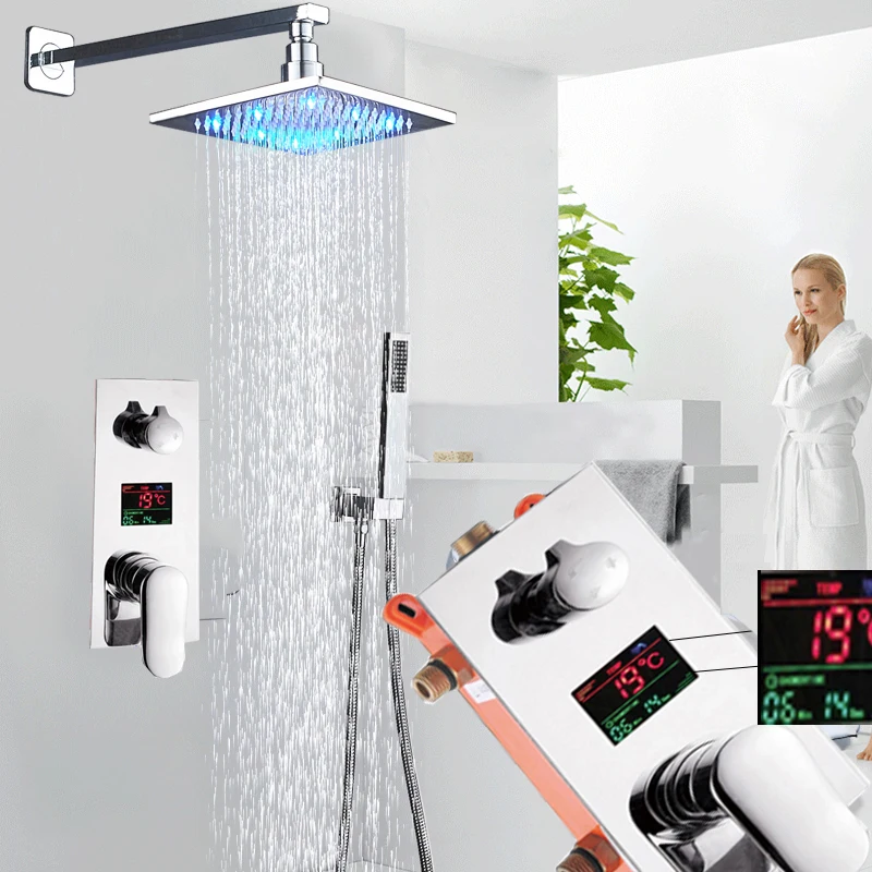 Хромированный Светодиодный смеситель для душа 12 дюймов, цифровой х...