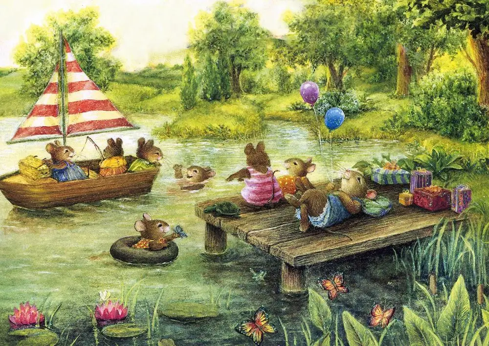 Лесная хижина мост пружина вода высшее качество вышивка рукоделие 1...