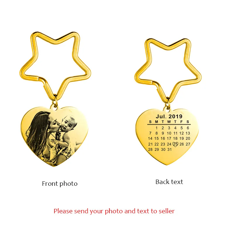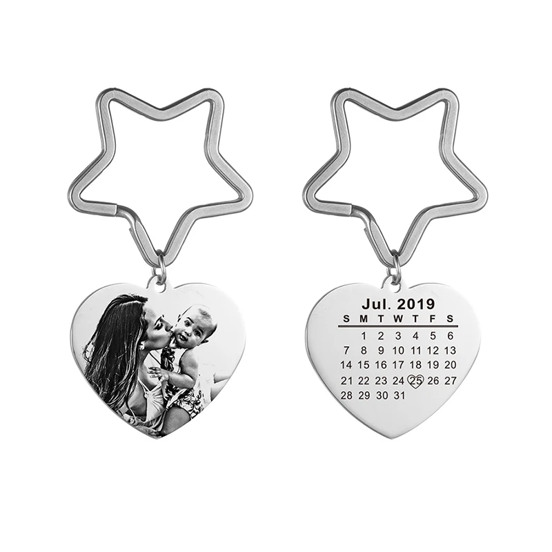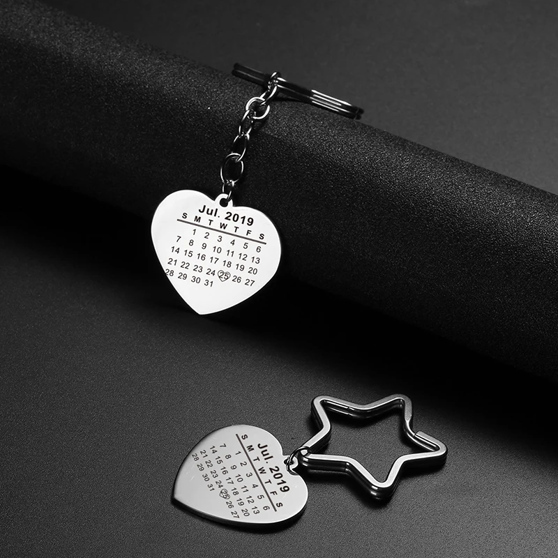 Персонализированные гравированные брелок-календарь Нержавеющаясталь сердце брелок в виде звезды имя брелок на ключи для Для женщин мужчин под заказ