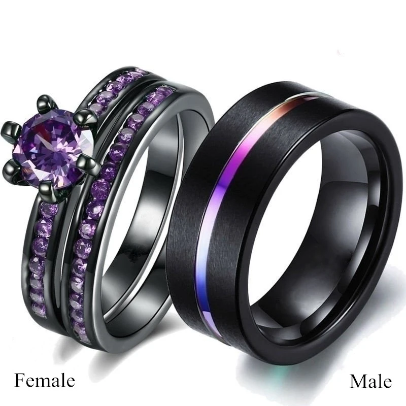 Кольцо для влюбленных-модное кольцо из карбида вольфрама радуги для мужчин и женщин, набор колец с фиолетовым цирконием для обручального кольца, подарок для влюбленных