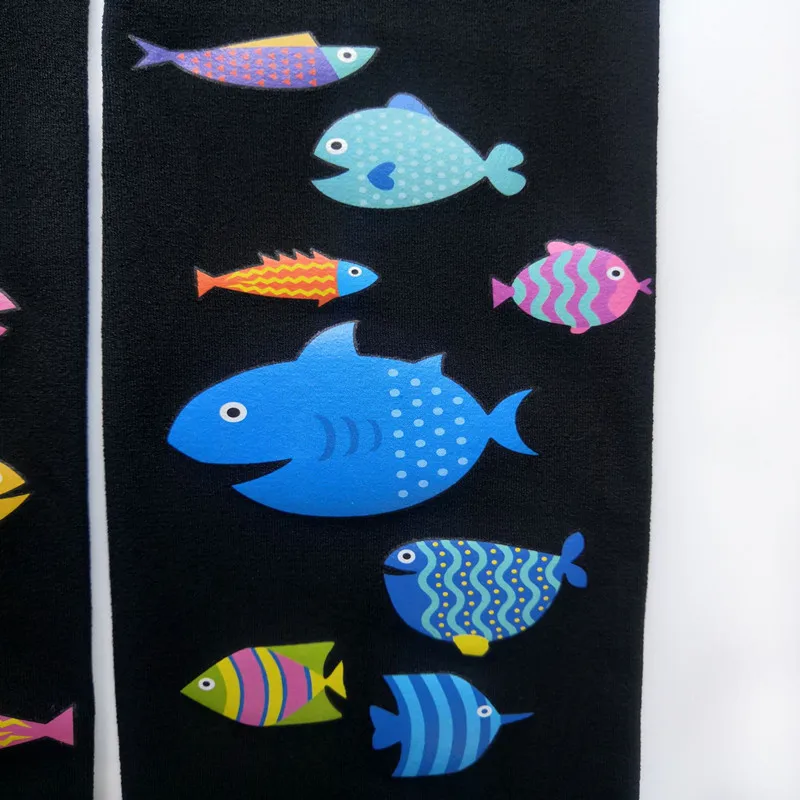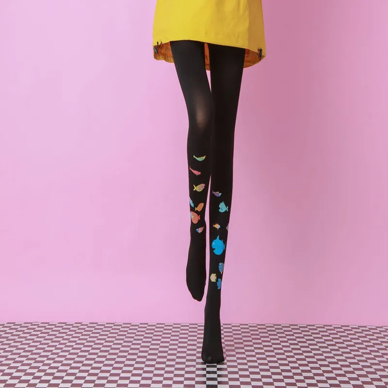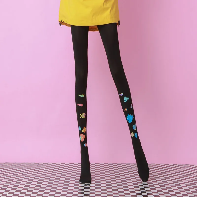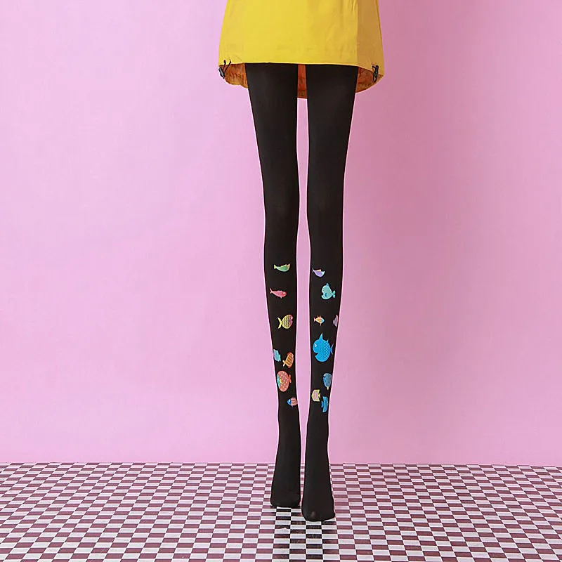 Новые женские колготки, черные колготки, милые женские модные колготки с принтом рыбы, теплые колготки для девушек, плотные колготки