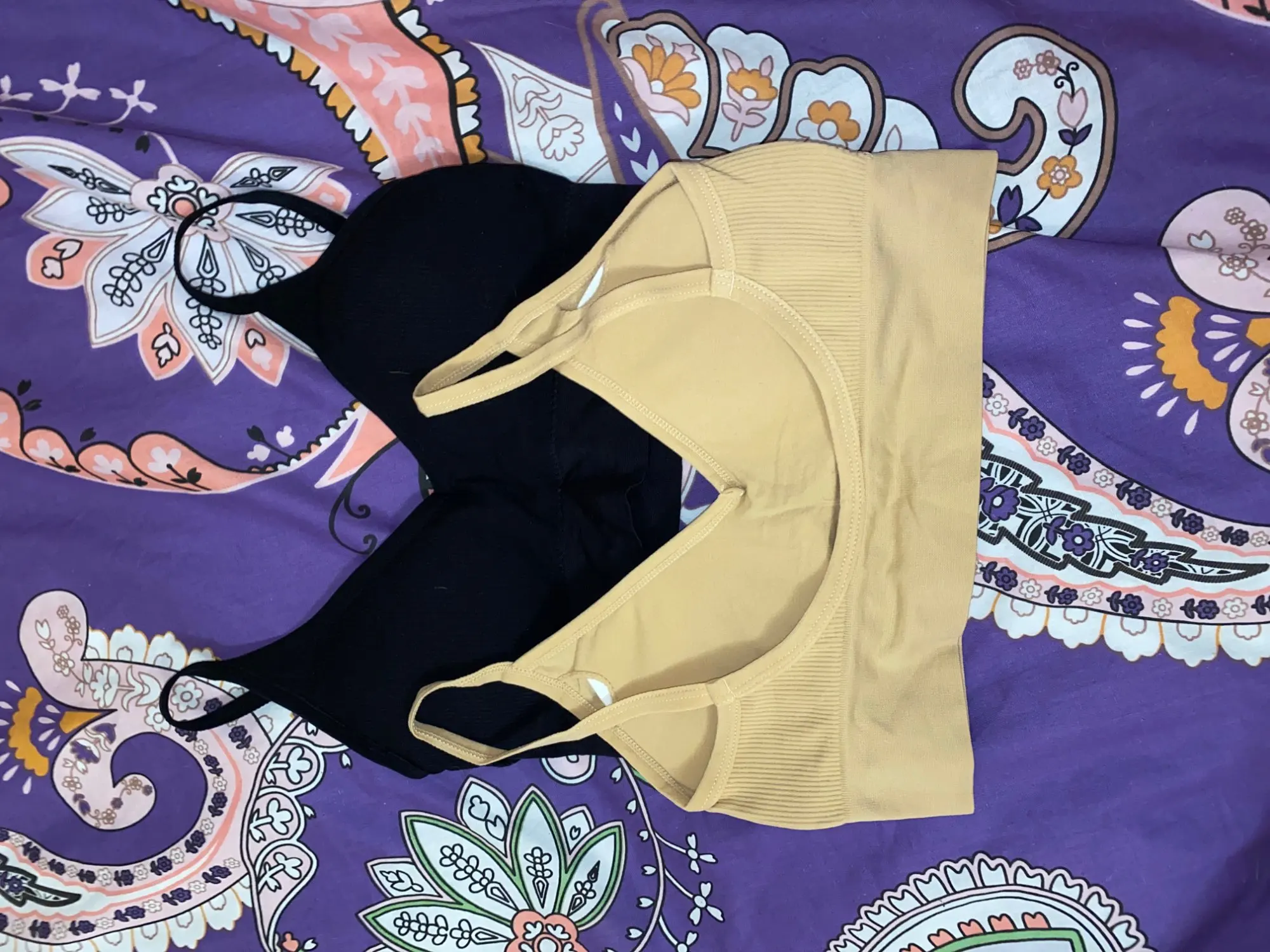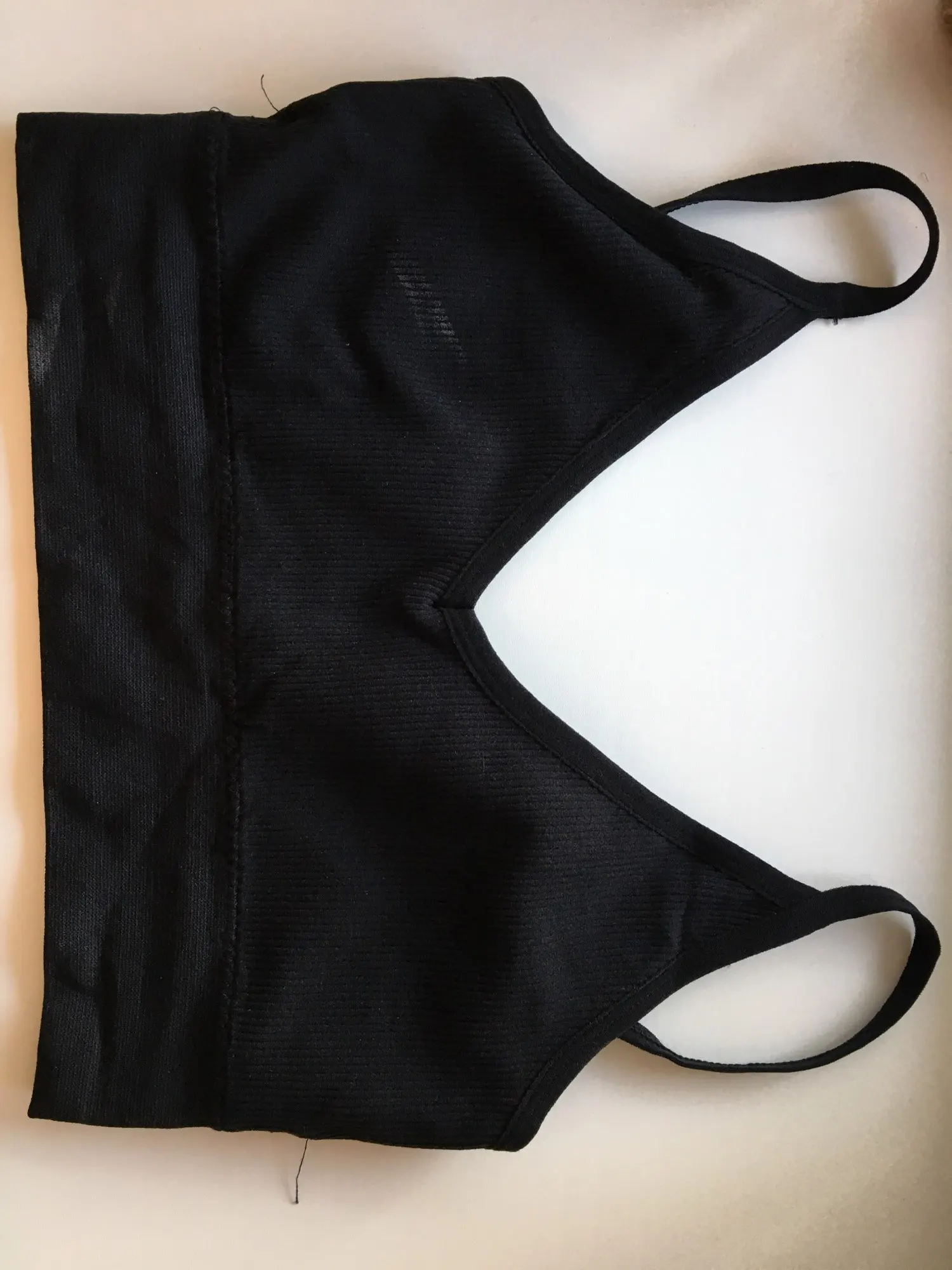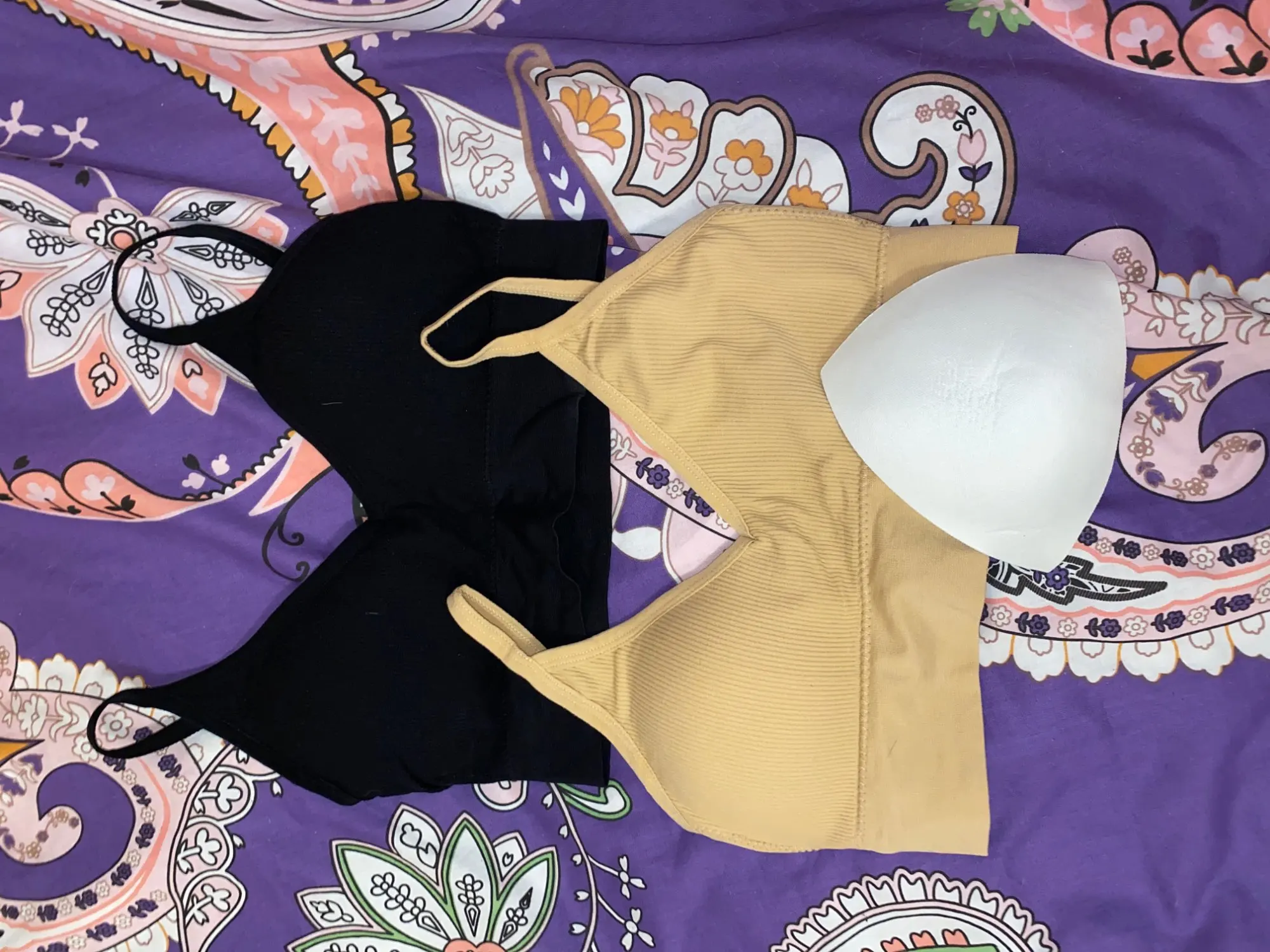 В белом просвечивается поролон, поэтому убрала. Странные лямки, как будто для широких плеч. Но комфортно и даже не слетают. Ниточки торчат, но для такой цены это норм. Материал хороший, как у любого бесшовного белья.
