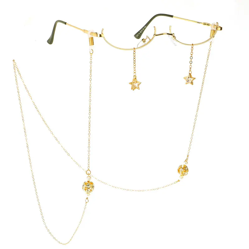 Модная оправа для очков для женщин, очки со звездами, кристаллами, цепочка с кулоном, украшение, полуоправа для очков