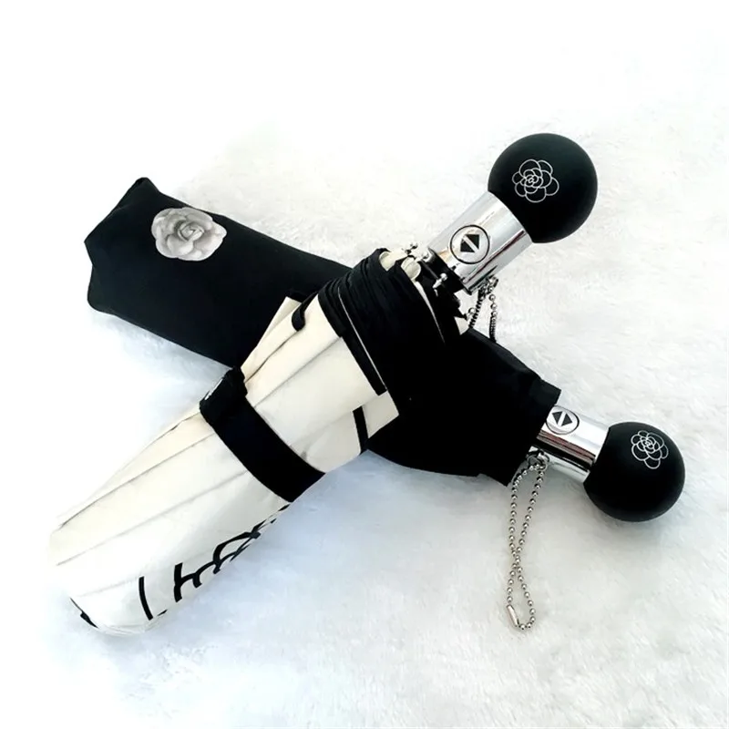 Складной автоматический зонт от ветра и дождя для женщин и мужчин, зонтик люксового бренда с черным покрытием