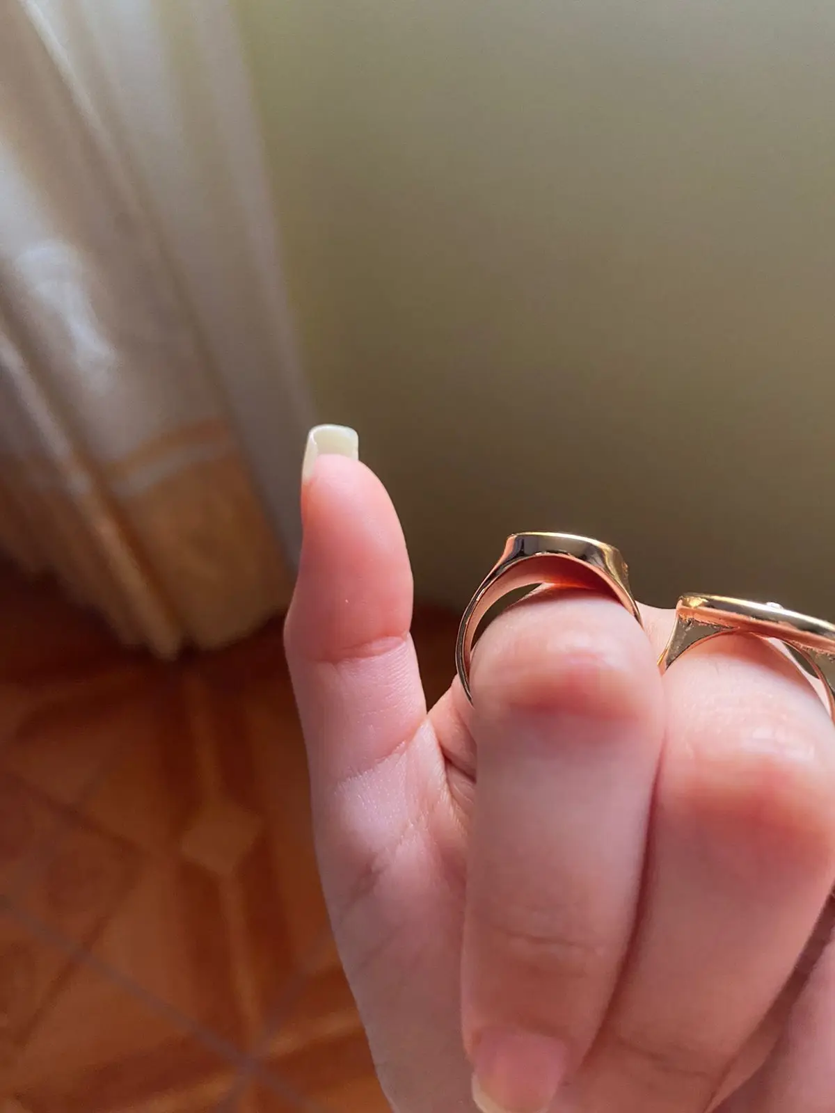 Заказывала 26.02. Пришли на новую почту 6.04. Кольца очень красивые, мне попались без дефектов на лицевой части, сбоку и внутри колец есть маленькие сколы, но их не видно. Цвет красивый золотой, не желтит. Размер подошёл но немного великоват, наверное подойдёт под размеры пальца 16-17
