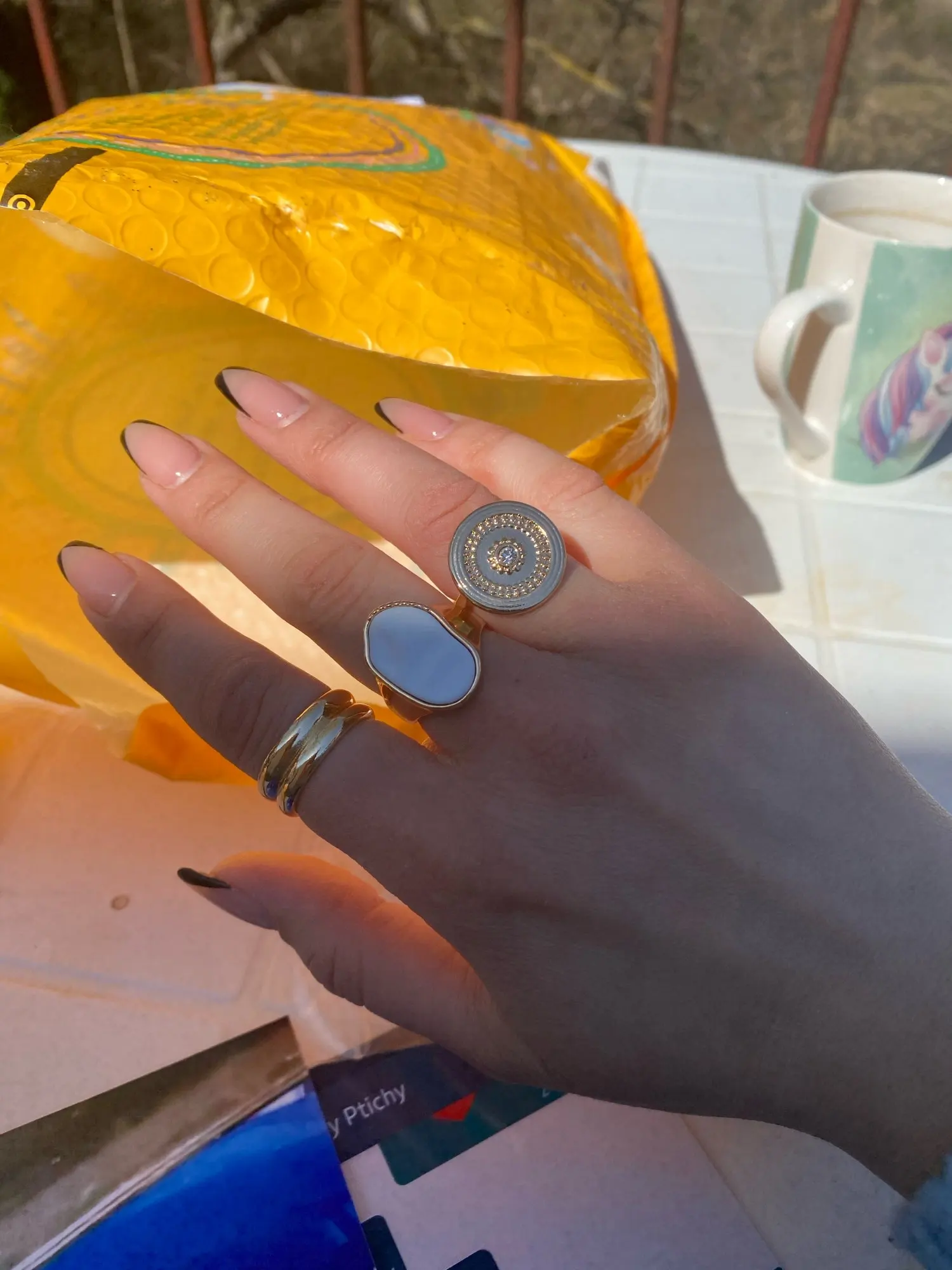 кольца супер!! регулируются по размеру и в целом качество не плохое! на мои тонкие пальцы 15-го размера налезли хорошо)) доставка в Нижний Новгород пару недель