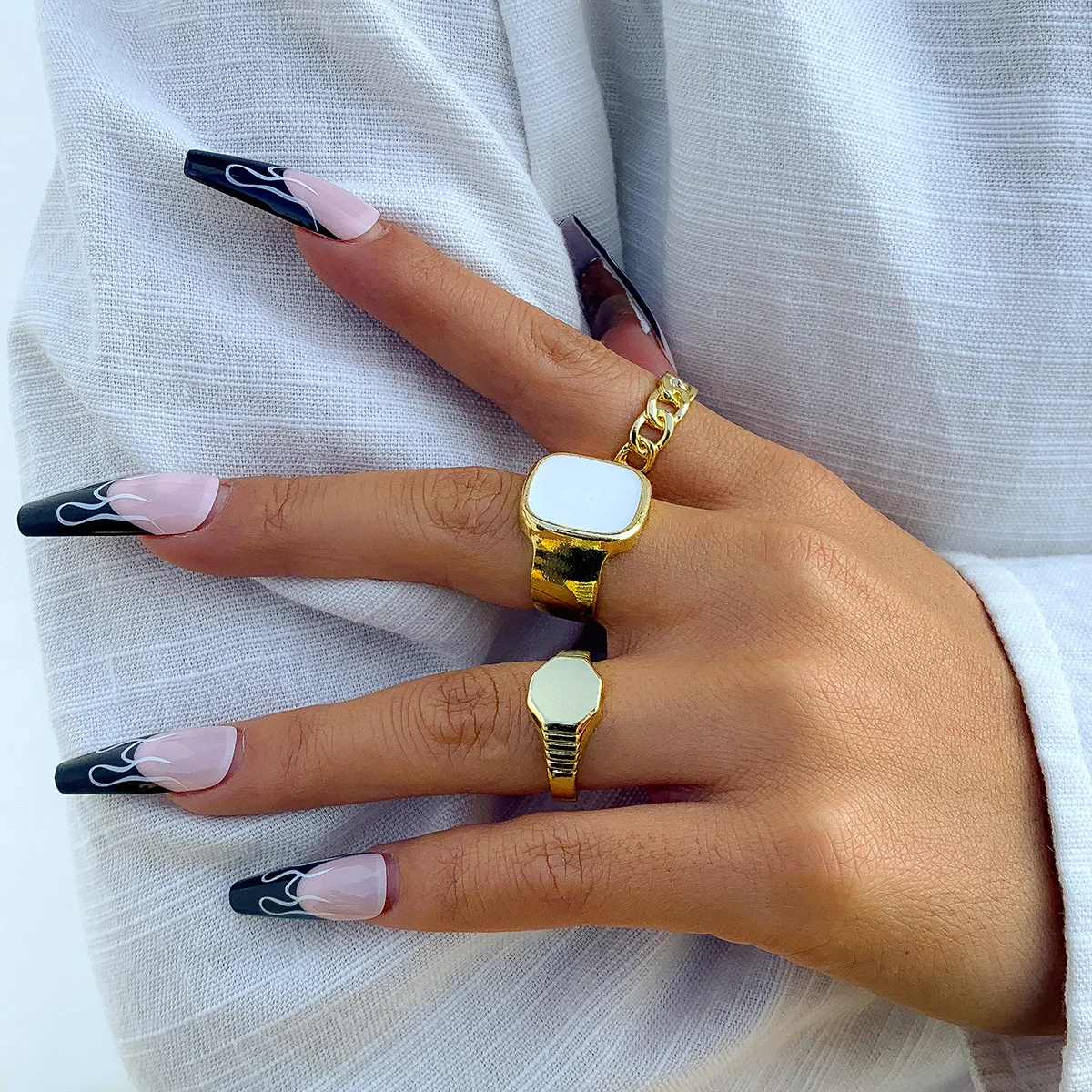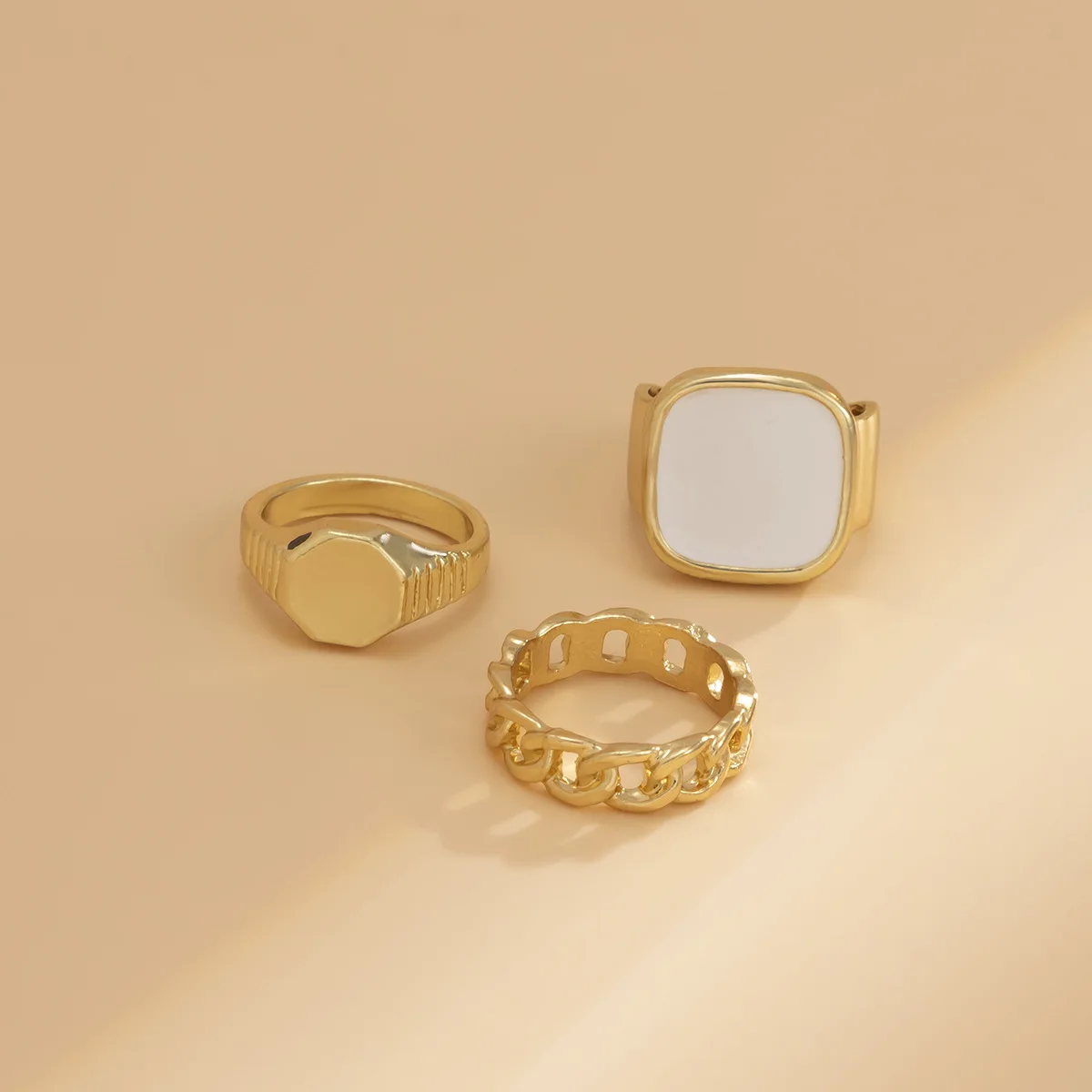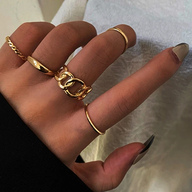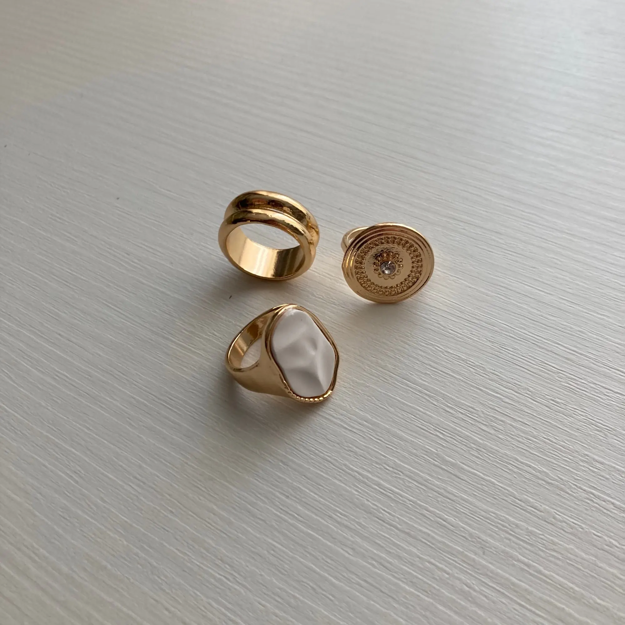 Кольцо женское AOMU, 3 шт.компл., золотистое металлическое, в этническом ретро-стиле, с геометрическим узором, большие ювелирные украшения для вечеринок, 2020