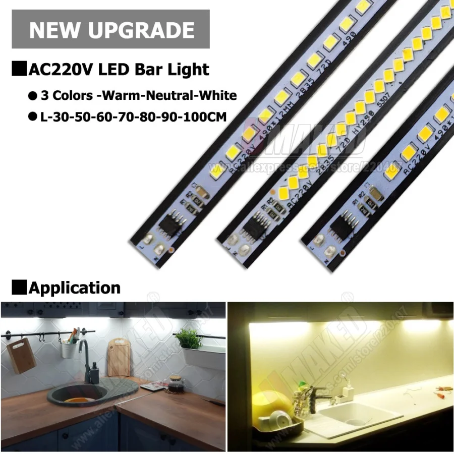 10 шт., Жесткая светодиодная полоса 220 В переменного тока, 290 мм, 490 мм, светодиодная полоса без драйвера, 220 В SMD 2835, светодиодная полоса освещения, не требует питания под счетчиком, полосная лампа