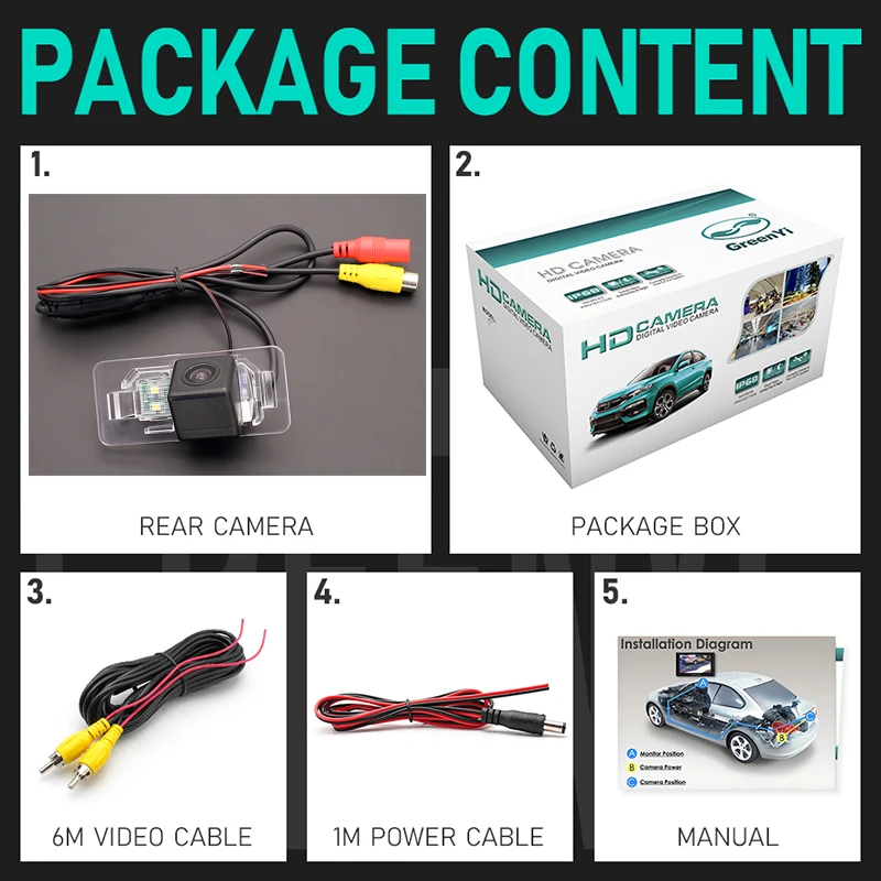 *** Примечание: Если монитор android dvd или стерео радио, вам нужен кабель 6 м красный триггер провода A и B:Соединительный обратный светильник мощностью DC12V +.B Подключите к проводу запуска DVD.