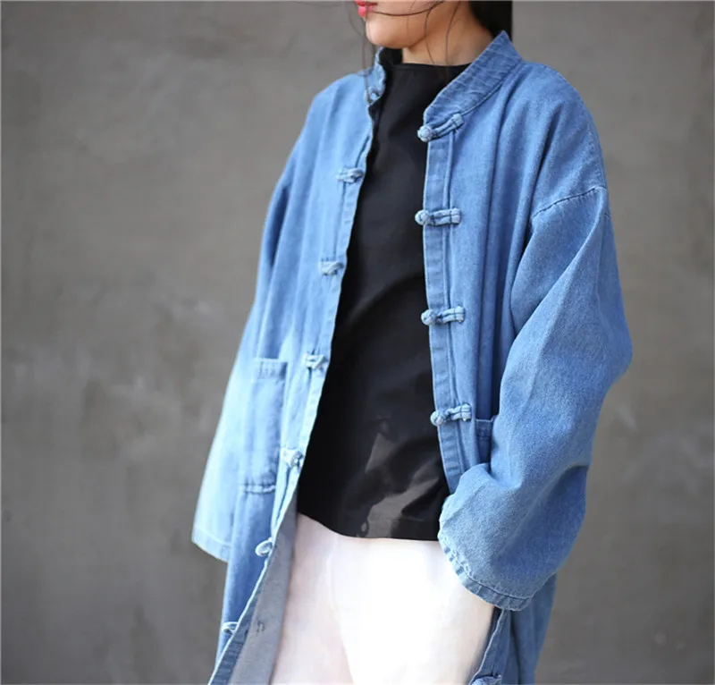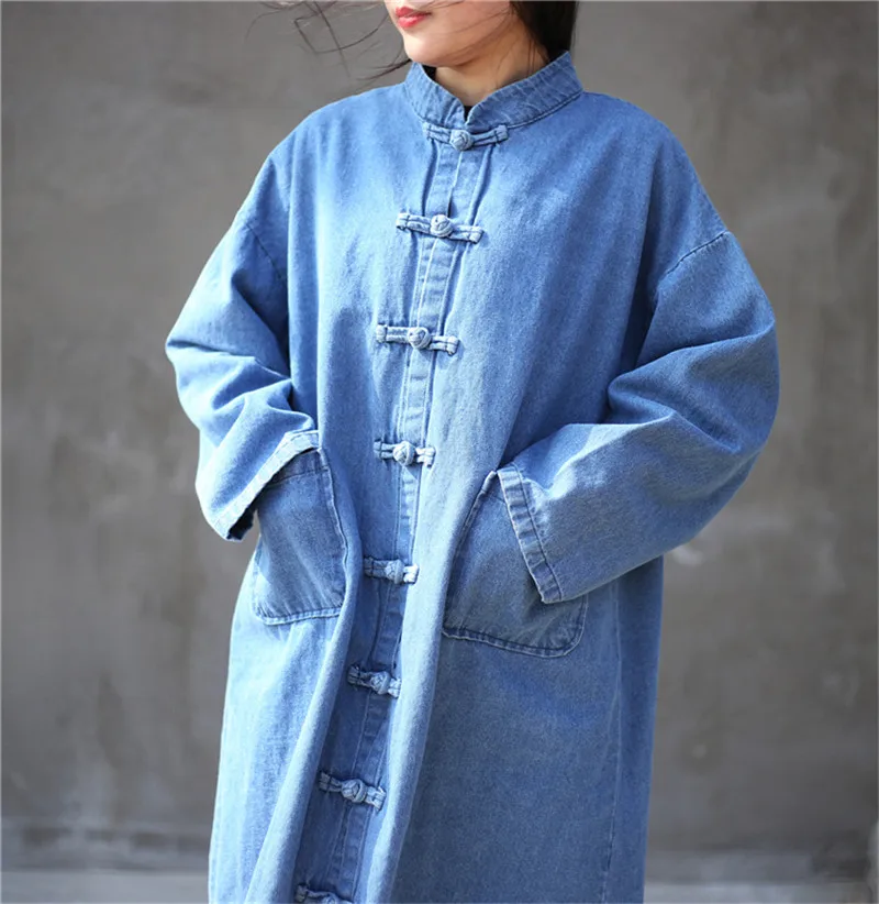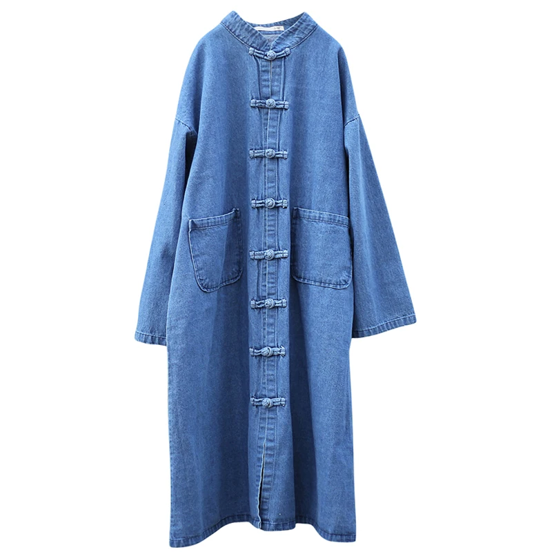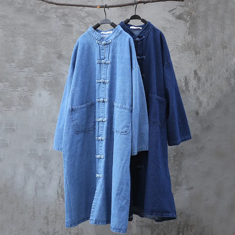 Женский джинсовый Тренч, длинный ковбойский кардиган, Классическая Повседневная Верхняя одежда большого размера, B121, весна-осень 2022