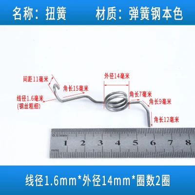 2 шт. диаметр провода 1,6 мм наружный диаметр 14 мм количество поворотов 2 кольца с крюком пружины торсионная пружина