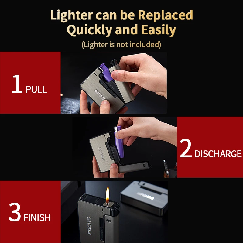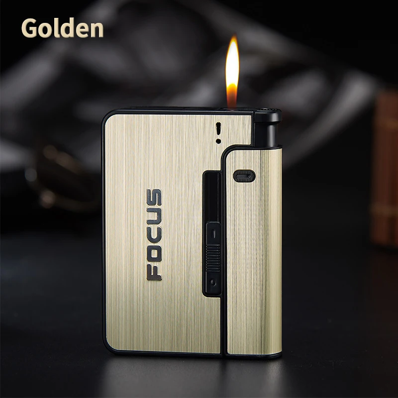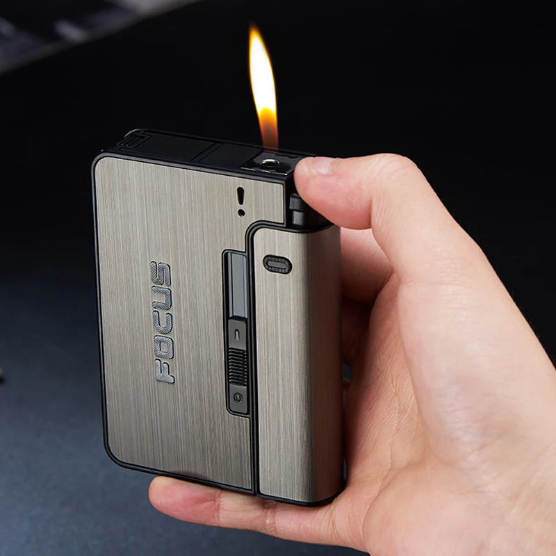 Чехол для сигарет мужской металлический, с автоматической зажигалкой, 10 шт.