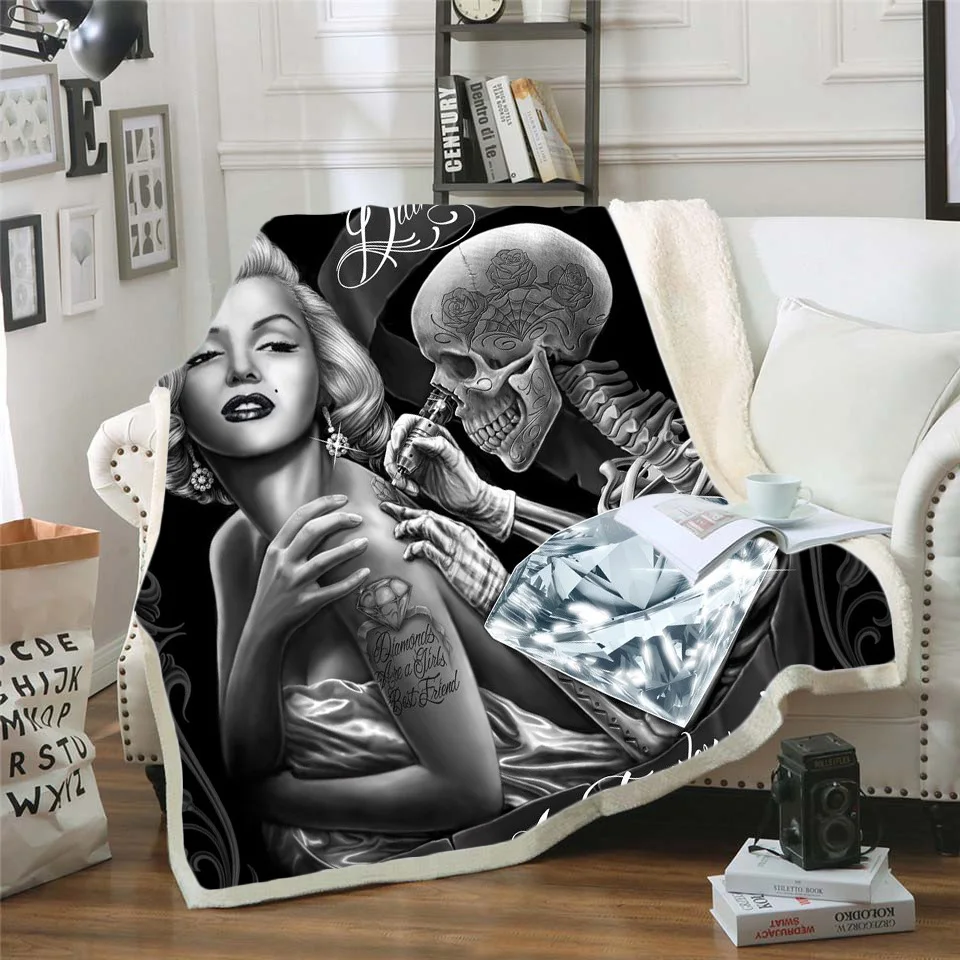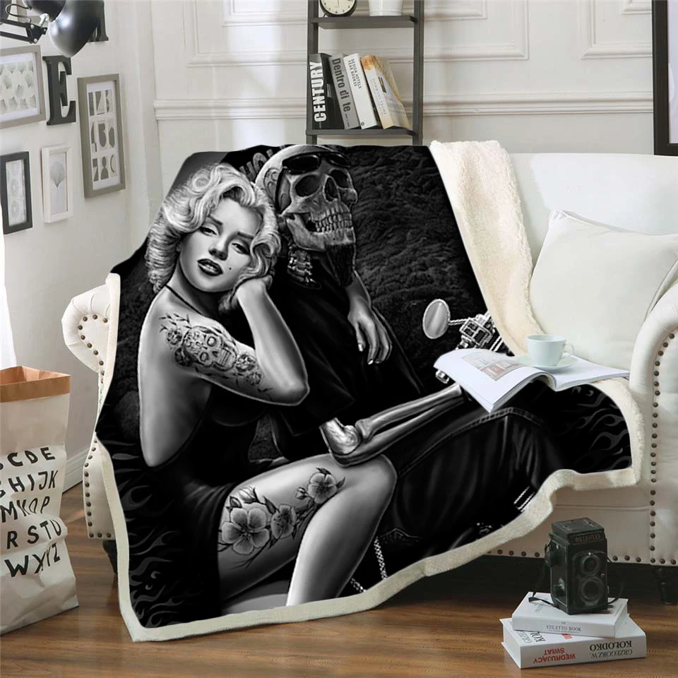 Новое постельное белье с черепом MarilynMonroe, плюшевое одеяло, одеяло из шерпы, готическое постельное белье, черное постельное одеяло для мальчиков, одеяла 003