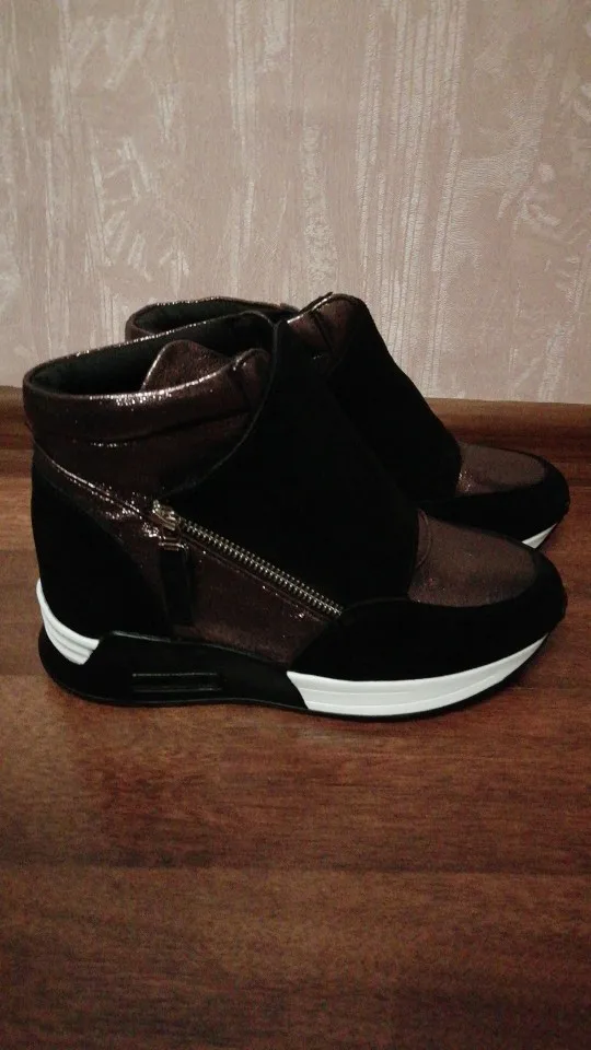 Они такие же, как на фотографиях продавца, очень красивые и удобные. Я потратил 38, и я заказал 39, и у меня все в порядке. Они немного сильно пахнут, когда вынимают их из упаковки.