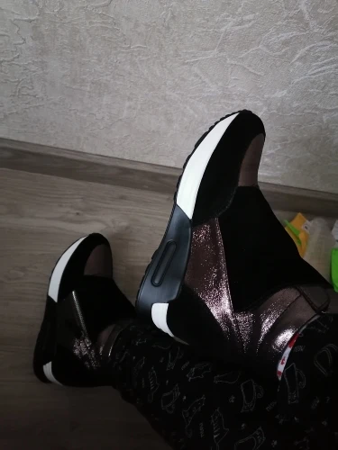 Первым делом, когда открыла пакет, испугалась, что обувь такая компактная и узкая по ширине, было сомнение, что нога не влезет, но опасения оказались напрасными, пришли размер в размер, нога в носке хорошо вошла. Очень лёгкие и удобные оказались. И вообще купить за 1614р кроссовки из натуральной замши это просто находка! Вся верхушка обуви выглядит достойно, а вот подошва вызывает сомнение, надеюсь без подвоха, лишь бы не отклеилась. Буду стараться носить в сухую погоду.