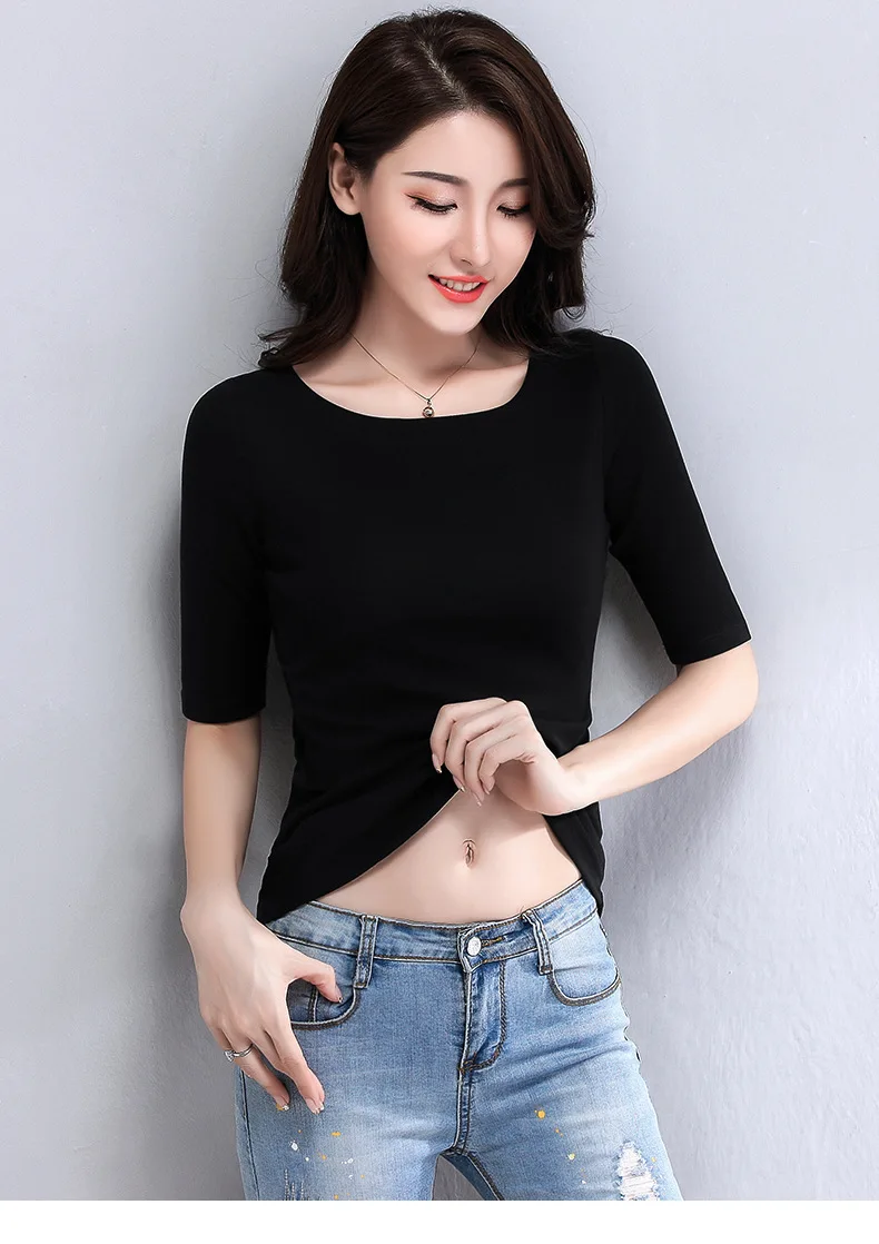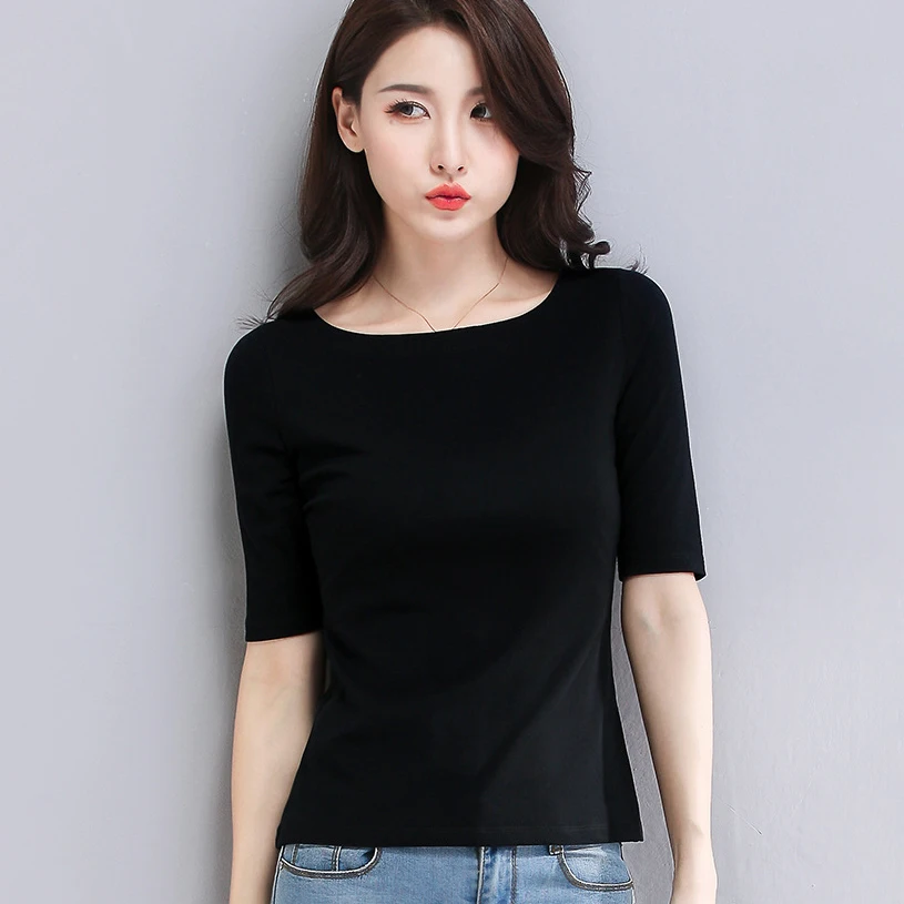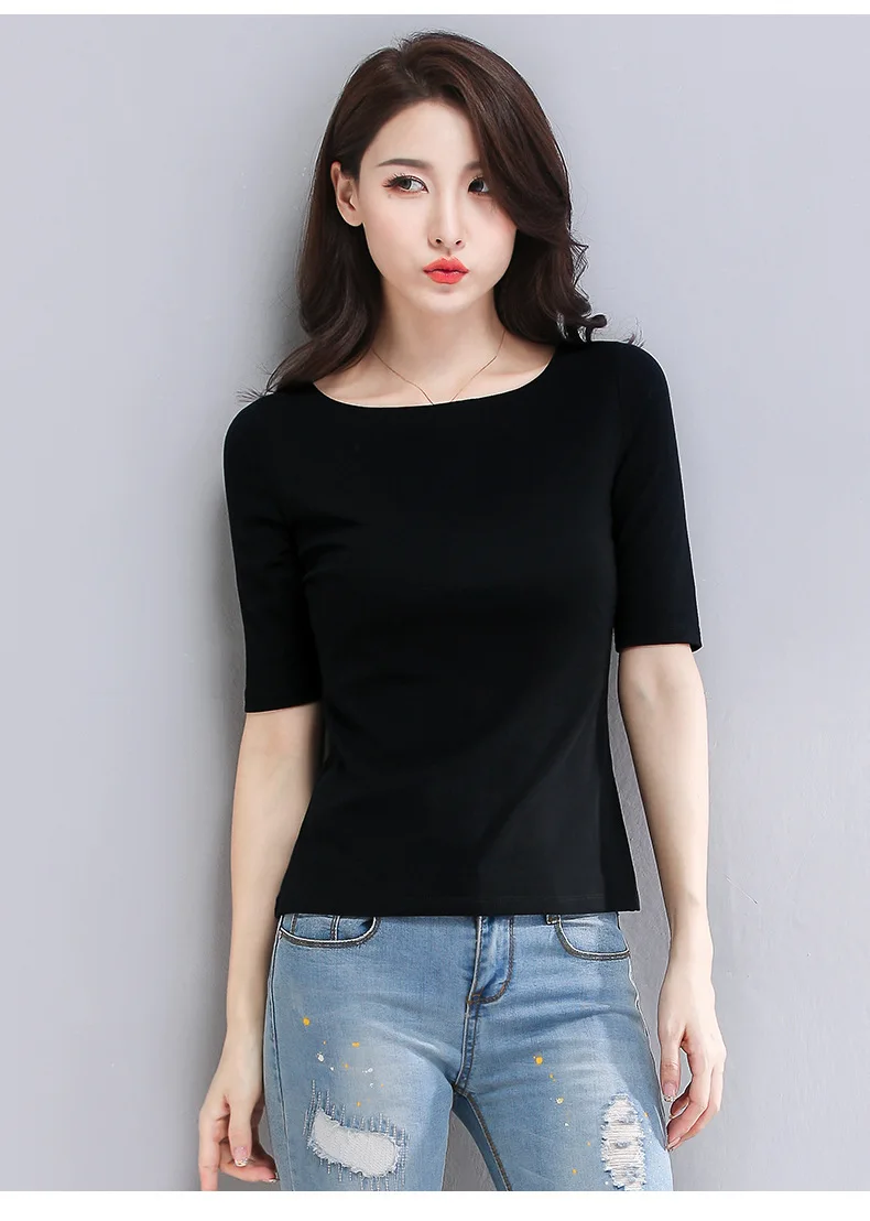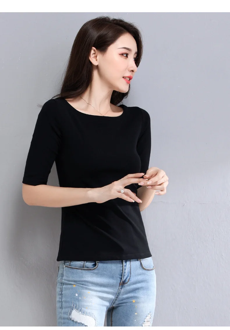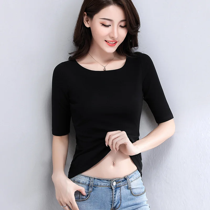 Футболка женская хлопковая с круглым вырезом, универсальная рубашка с коротким рукавом, черный белый серый желтый Шир