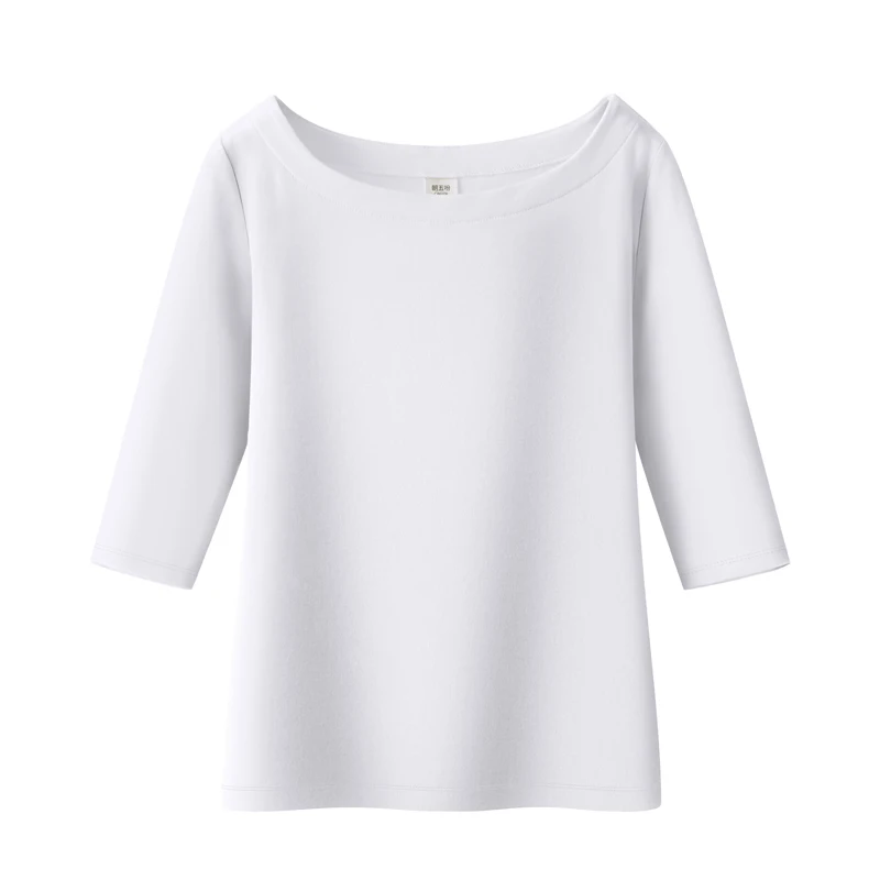 Женская хлопковая футболка, однотонная, с воротником-лодочкой, с по...
