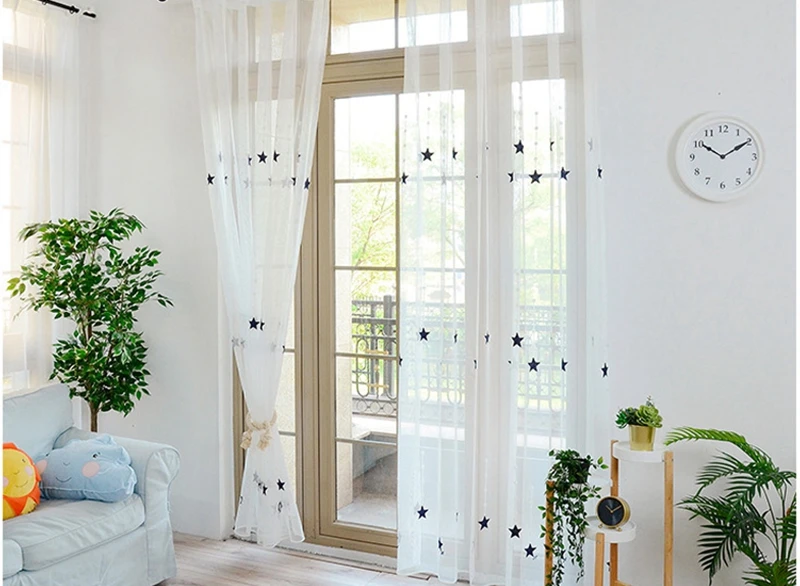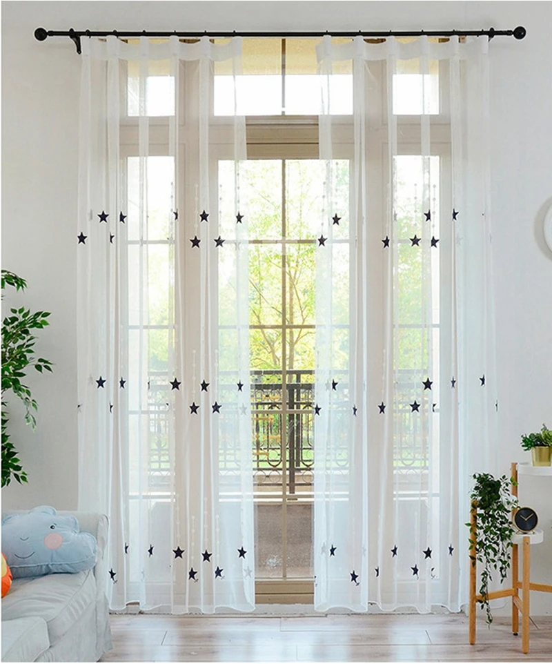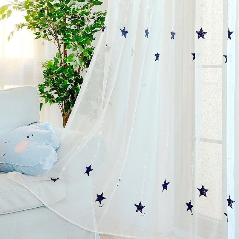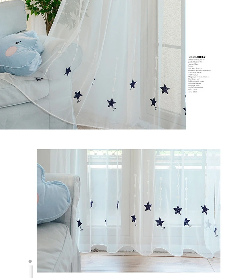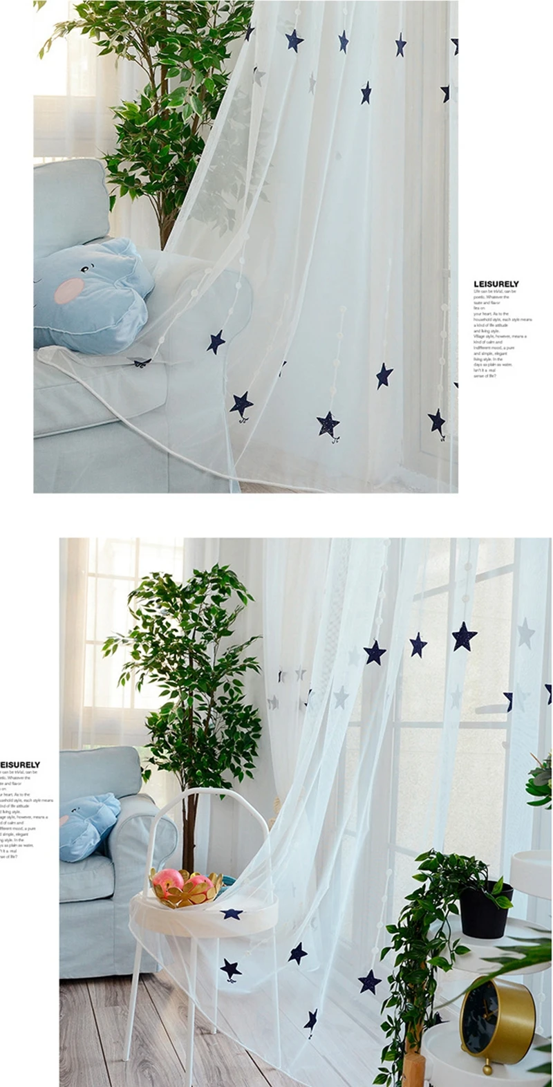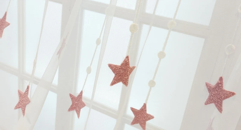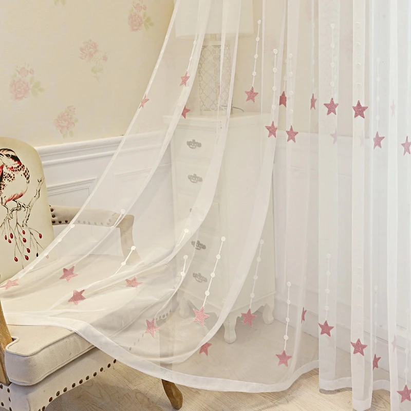 Розовая Занавеска из вуали с вышивкой со звездами для детей, шторы для спальни для гостиной, кухни, оконные занавески, корейский Тюль P3093