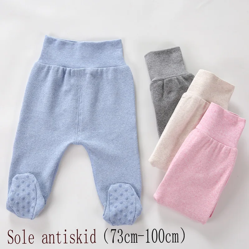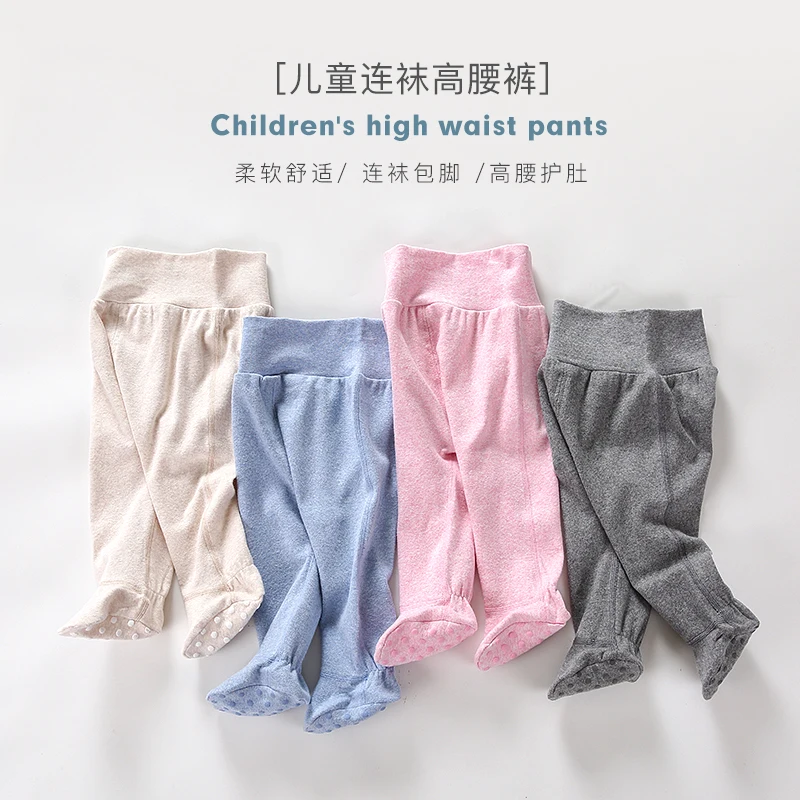 Штаны унисекс с высокой талией для новорожденных Хлопковые Штаны для малышей 0-6-24 месяцев Детские Штаны для мальчиков и девочек ровные носки леггинсы для малышей