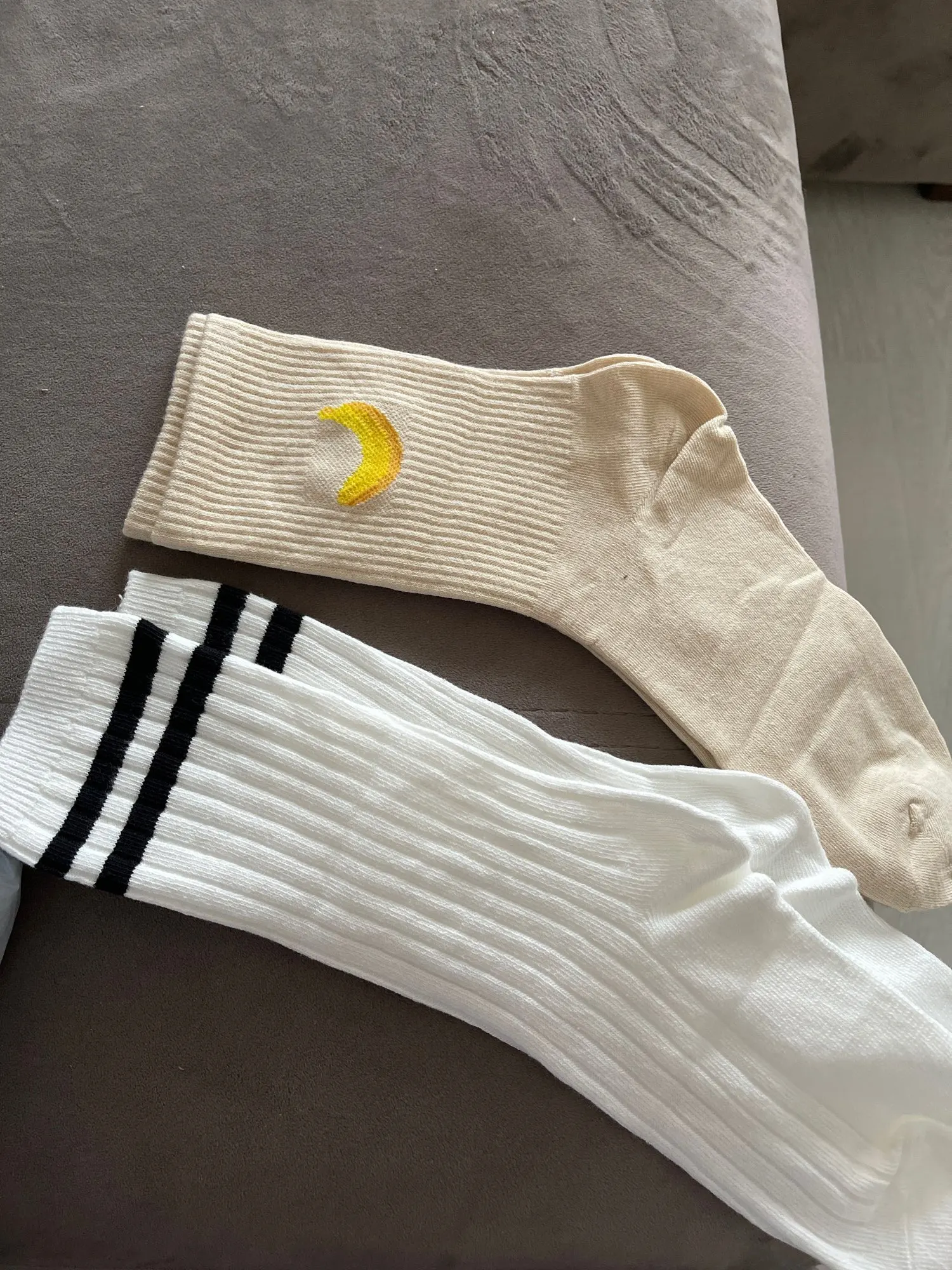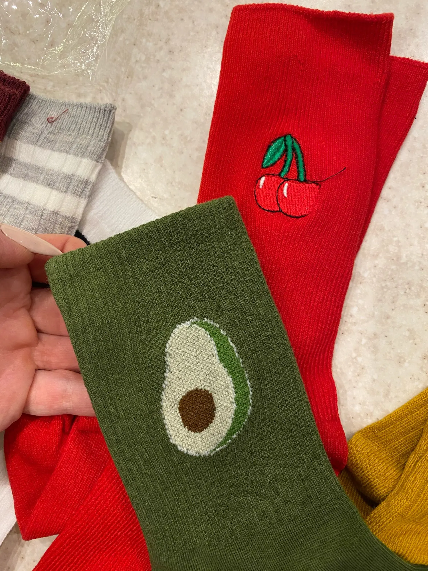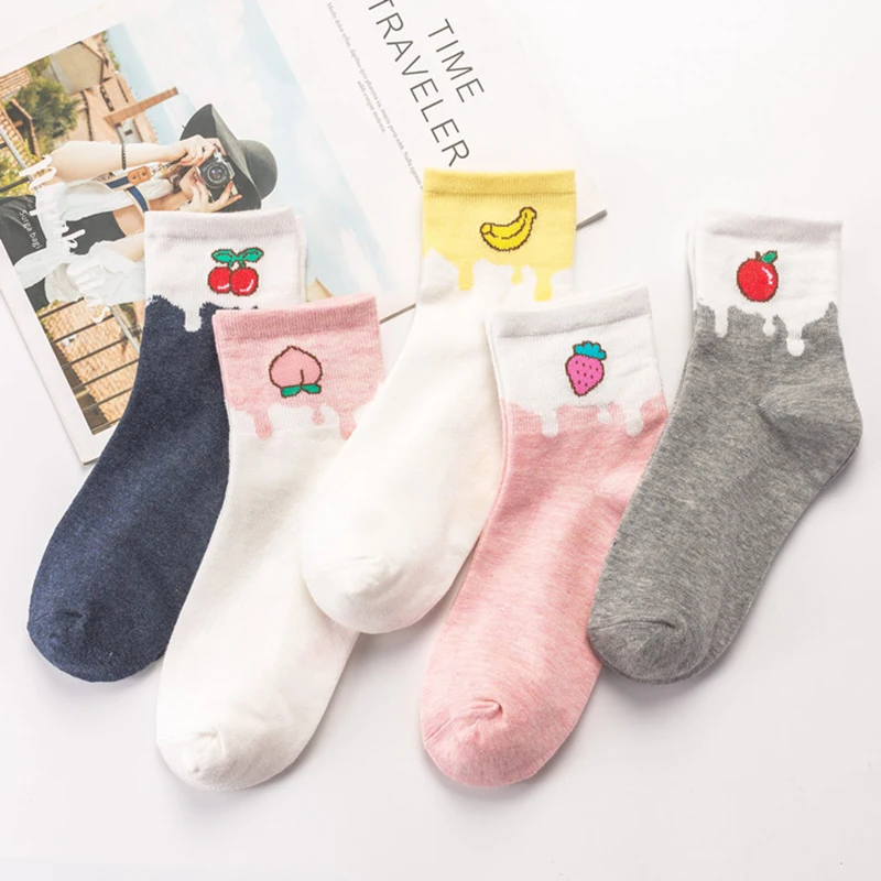 Женские носки милые Мультяшные фрукты вышивка плетение банан авокадо вишня яблоки персики Ананас Лимон Харадзюку носки для скейтборда